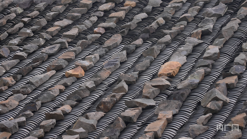 海利村石屋屋顶压着石块,以防瓦片被台风掀走(央广网发 苏嘉垚 摄)
