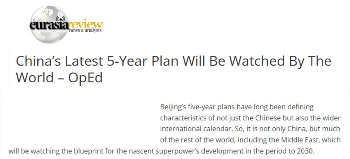 文章认为,中国第十五个“五年规划建议”不仅引领着中国的前行方向,也为包括中东地区在内的世界各国提供了与中国发展战略对接的宝贵契机。未来直至2030年的中国发展蓝图,必将吸引全球目光。