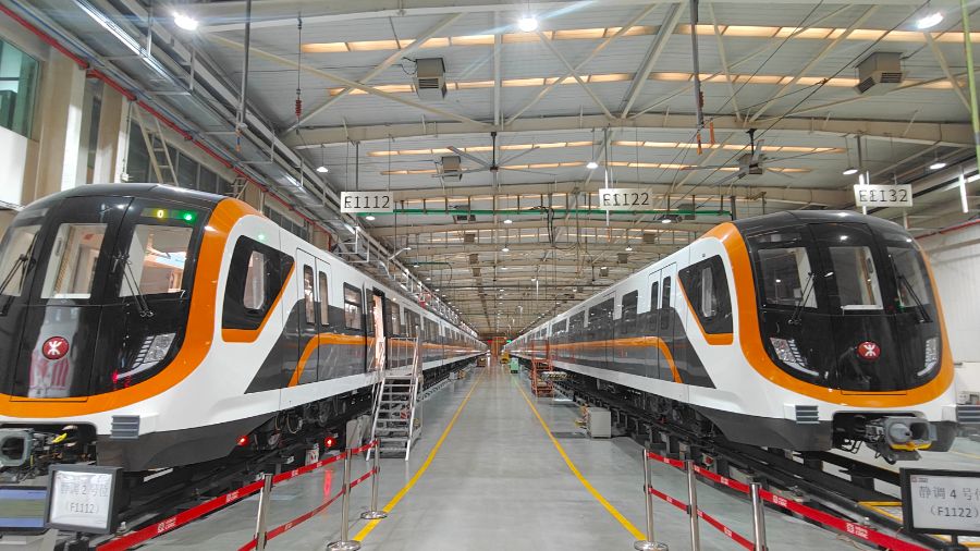 中车广东厂区内,服务大湾区各条城际轨道的动车组整齐列阵。赵晓晨摄