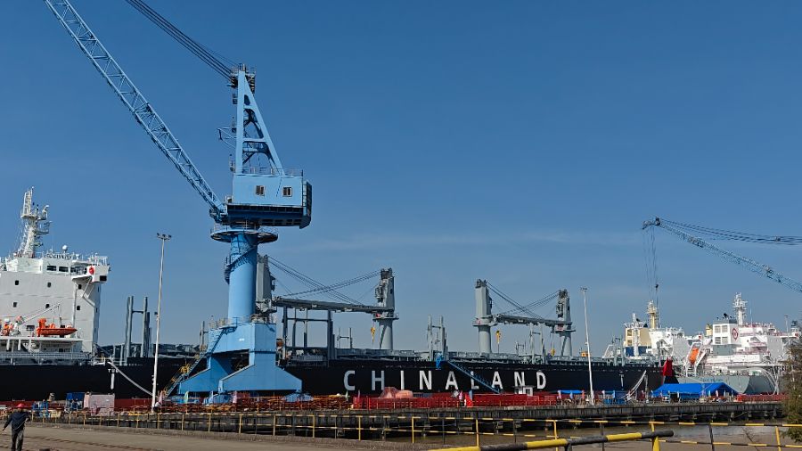 与此同时,相距不远的南洋船舶工程公司厂区内,第五代“南洋型”40500DWT敞口型节能环保散货船正在批量建造,这个明星产品在全球小灵便型散货船市场的交付占比已超20%。“去年我们交付了23艘船,今年计划交付32艘。昨天刚交付了第29艘。”南洋船舶董事副总经理朱继雷介绍,南洋船舶的产值从2021年的近8亿元跃升至2024年的50.6亿元。