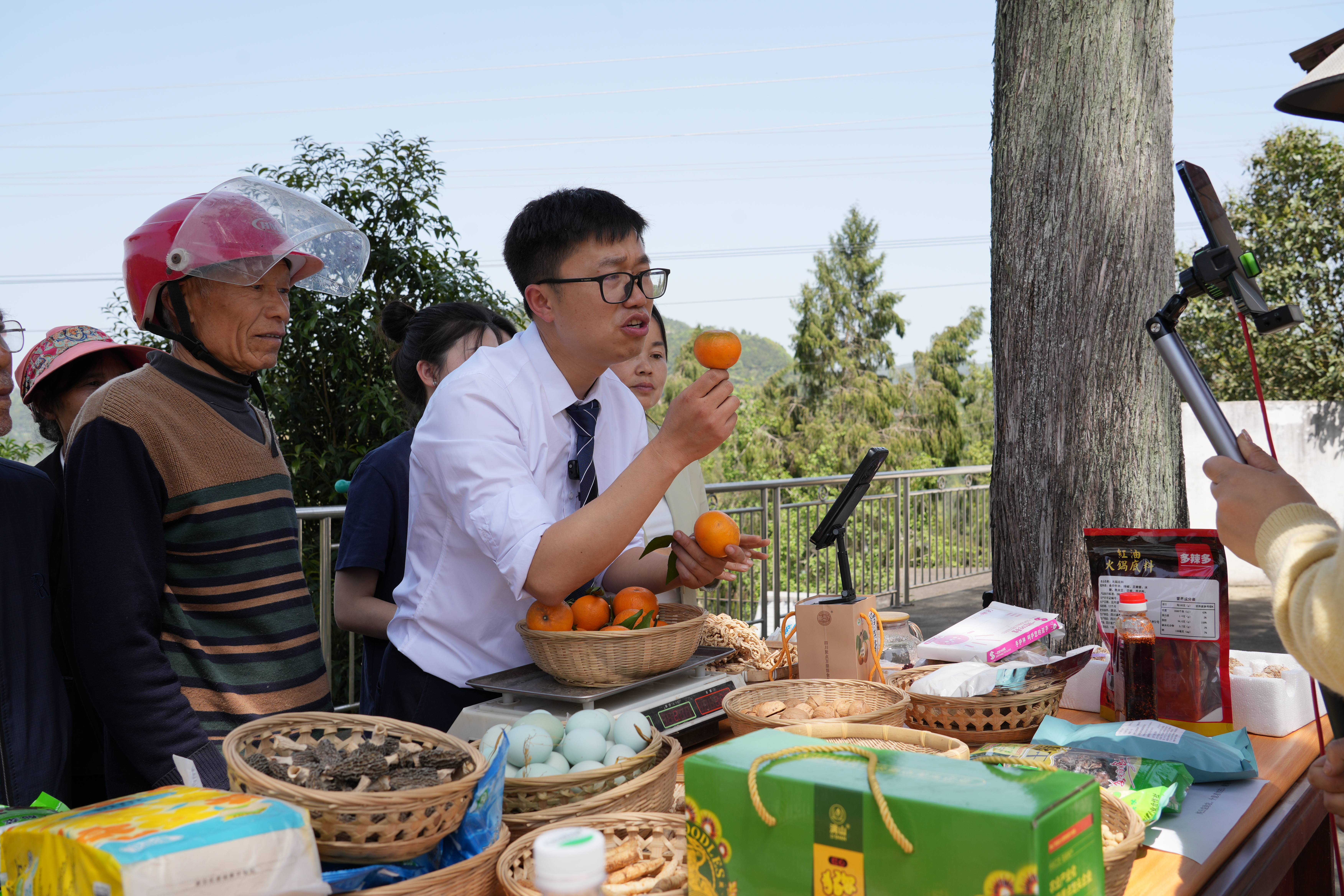 4月9日,“村播”们在四川省广元市苍溪县的沙参园直播。