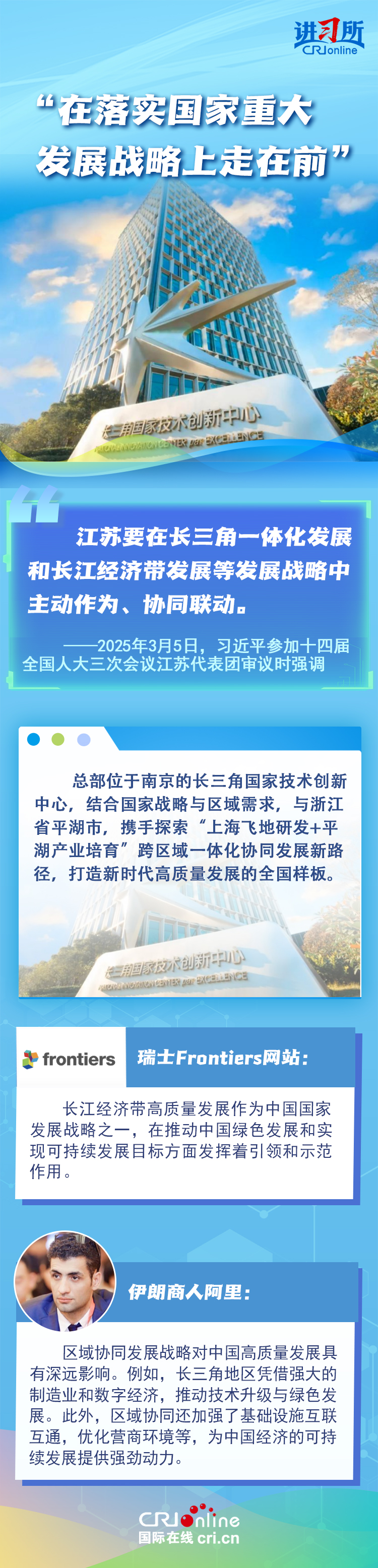从紫金山实验室的6G突破到苏州工业园区的开放升级,从长三角协同创新到永联村的共富实践,江苏在中国式现代化新实践上已成为世界观察中国高质量发展的重要窗口。国际人士认为,中国因地制宜的创新发展之路有力推动了国家现代化进程与民生福祉提升。