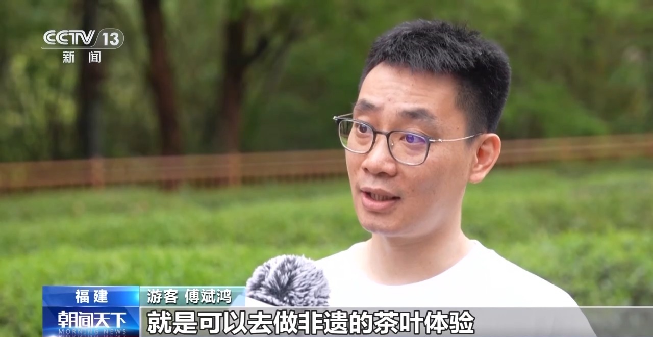 游客傅斌鸿:武夷山的茶跟武夷山的旅游融合得特别棒,在这里有个很好的特色就是可以去做非遗的茶叶体验。