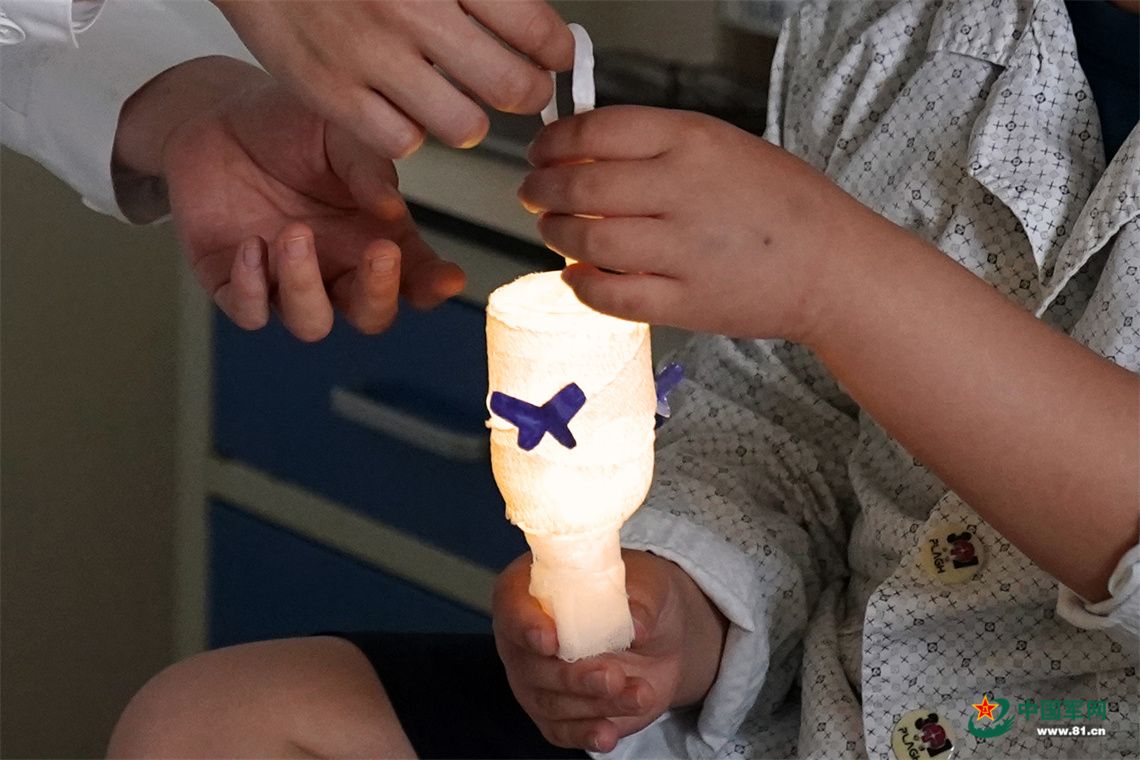 护士将星星灯递给军娃潼潼。 中国军网记者孙悦摄