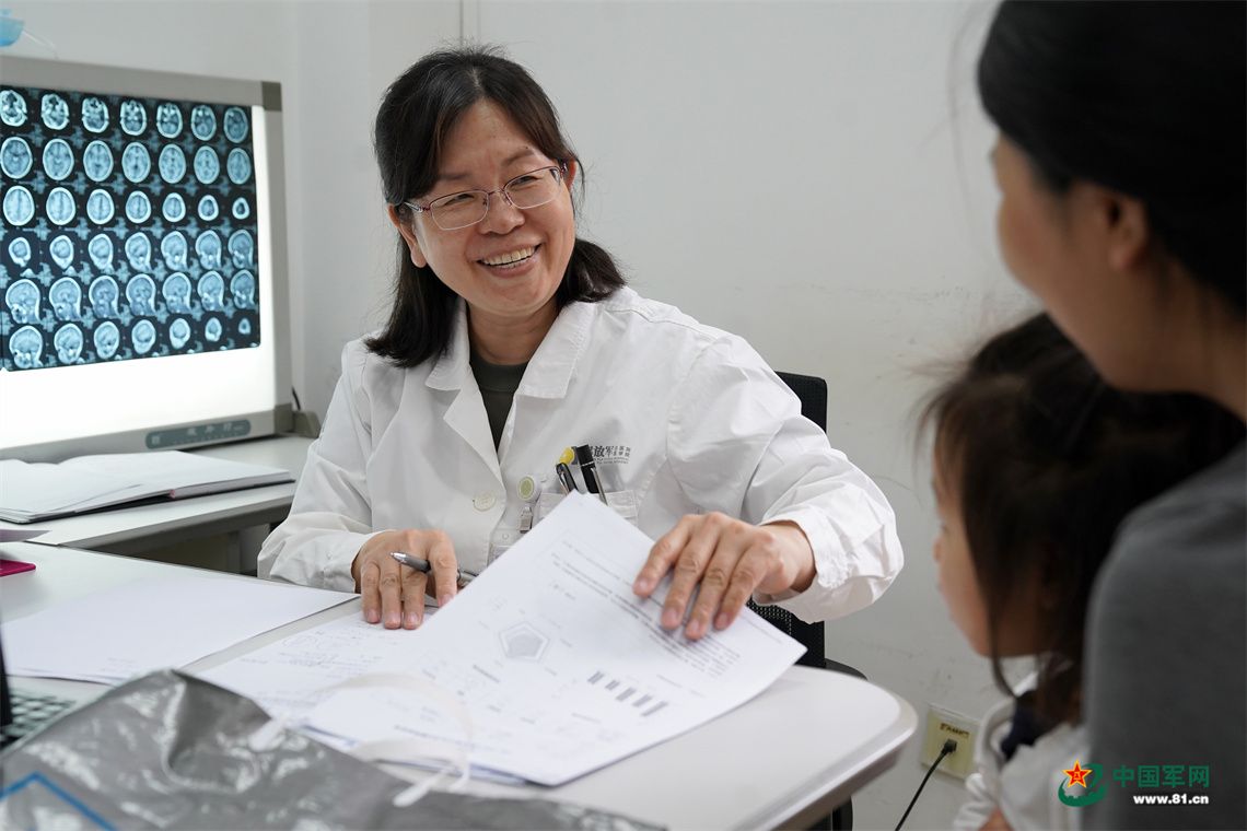 儿童神经内科主任医师王三梅在门诊与患者家属沟通军娃病情。中国军网记者孙悦摄