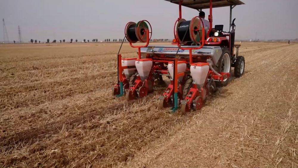 在商丘市梁园区,农技专家走进田间地头,指导新型播种机进行玉米播种,开展种肥同播作业。