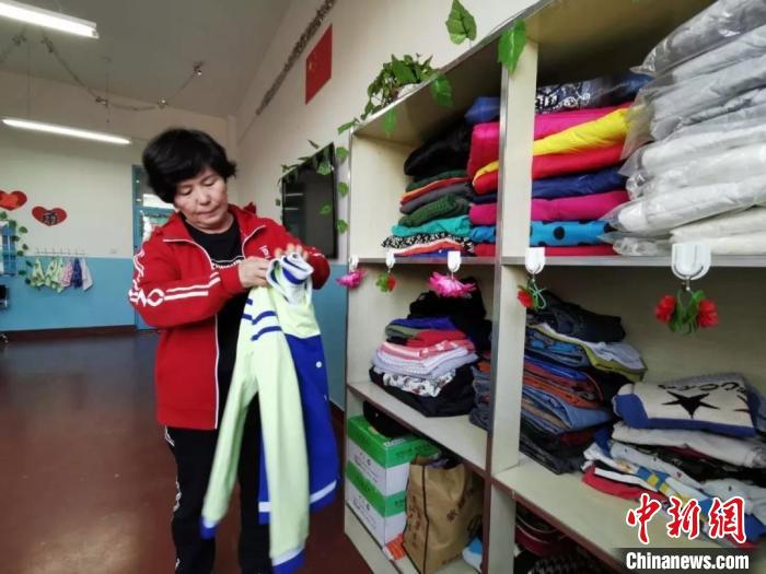 吾吉整理捐赠的衣物。 张晓敏摄
