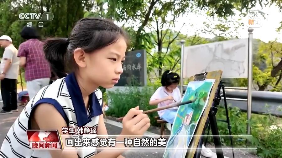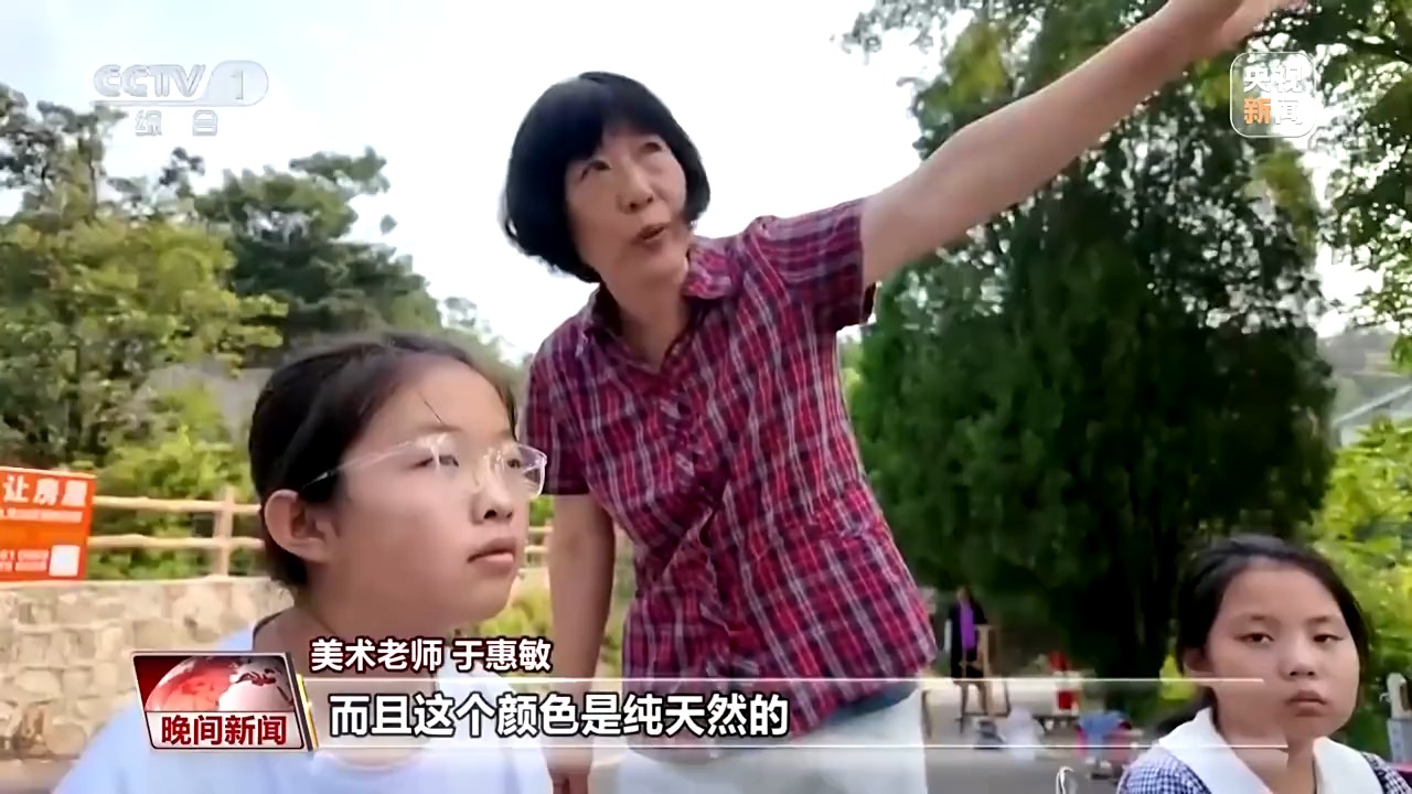 美术老师于惠敏:每年夏天带着孩子来画画,这里山清水秀,而且颜色是纯天然的。