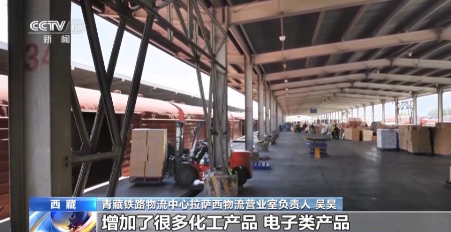 青藏铁路物流中心拉萨西物流营业室负责人吴昊:以前我们这边到达量还是比较单一的,也就是一些粮食、饮料、建材之类的,现在到达的物品比较多元,增加了很多化工产品、电子类产品。