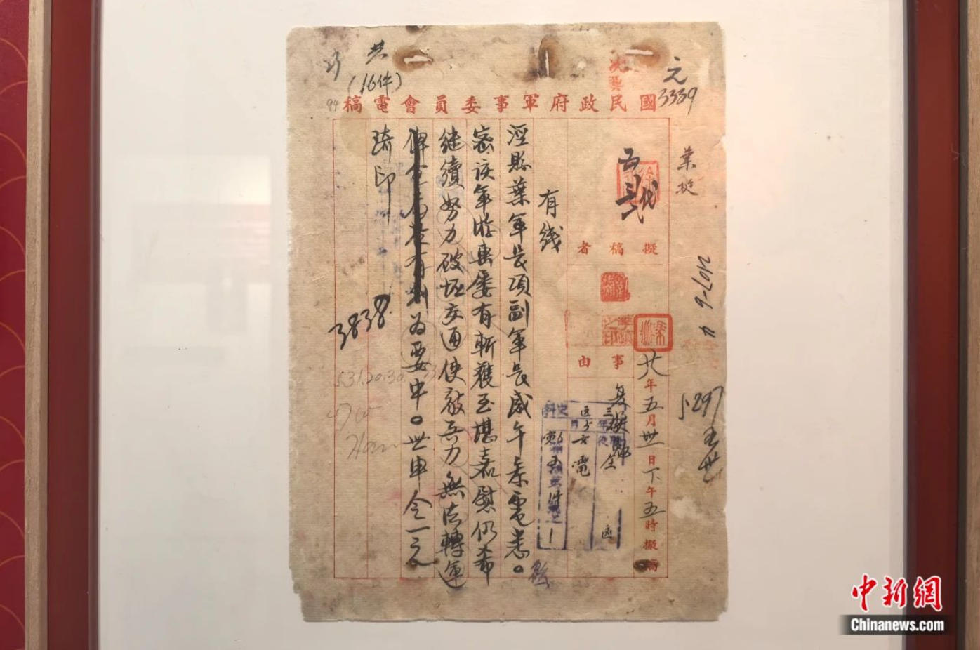 蒋介石第一次给叶挺军长、项英副军长的嘉奖令。张强摄