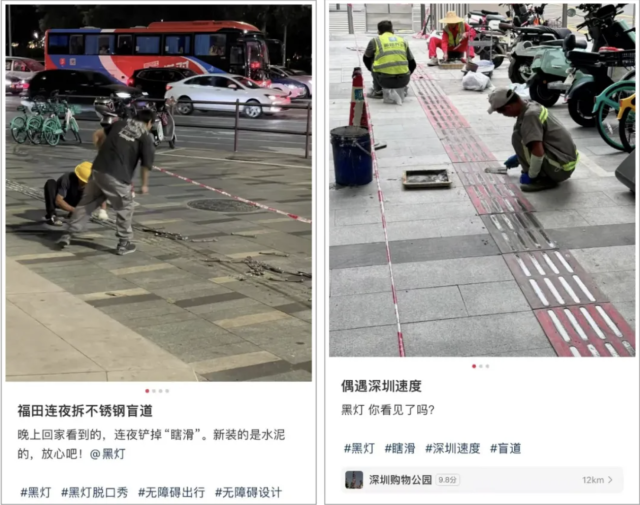 脱口秀演员“黑灯”在节目里“吐槽” 不锈钢盲道一下雨就成“瞎滑”后,是深圳福田率先开拆不锈钢盲道。这一脱口秀段子迅速照进生活的案例,让不少网友纷纷点赞“深圳速度名不虚传”。
