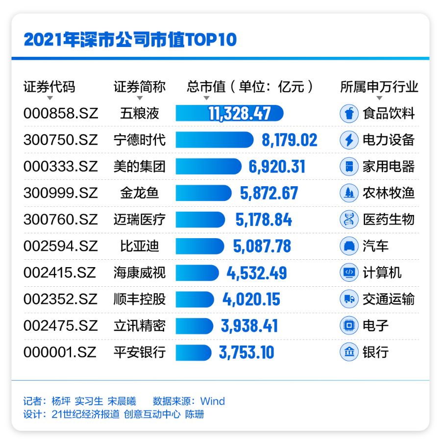 对比五年来深市市值TOP10名单,也能发现科技创新企业市值增长尤为突出。