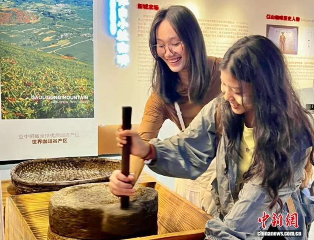 图为8月6日,中缅青年走访保山咖啡博物馆。时文枝摄