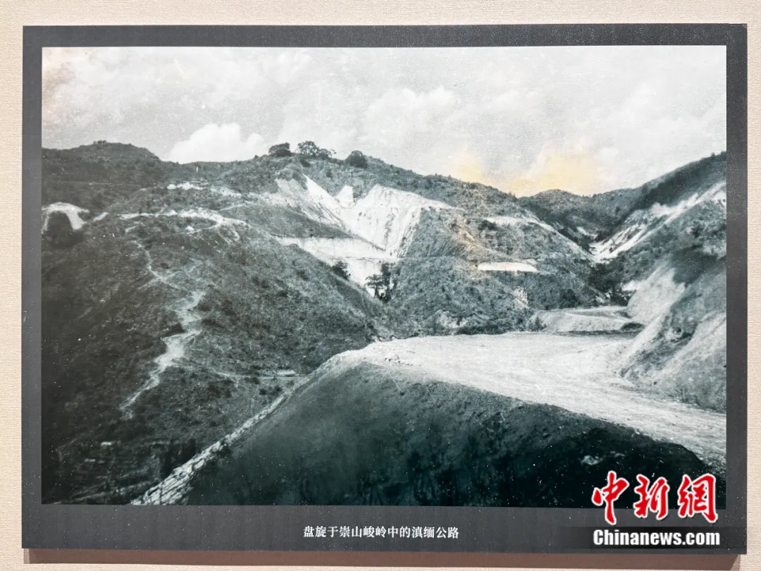 图为盘旋于崇山峻岭中的滇缅公路,“血肉筑就抗战生命线——抗战时期滇缅公路档案文献图片展”展出内容。