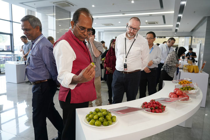2025年5月19日,参加上海合作组织减贫和可持续发展论坛的嘉宾在陕西杨凌种业创新中心考察。新华社记者邵瑞摄