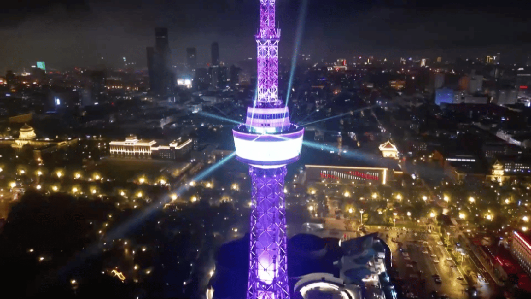 夜幕降临后,两座高塔的光影秀不仅照亮了城市夜空,更点亮了市民的情感记忆。