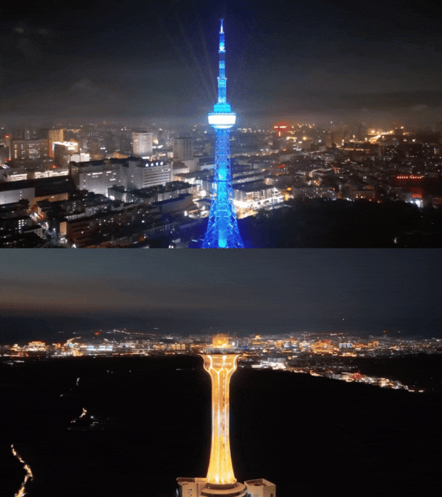 当长春的吉林省广播电视塔披上霓虹新装,当延边的海兰明珠塔绽放梦幻光影,吉林大地上两座高塔遥相呼应。