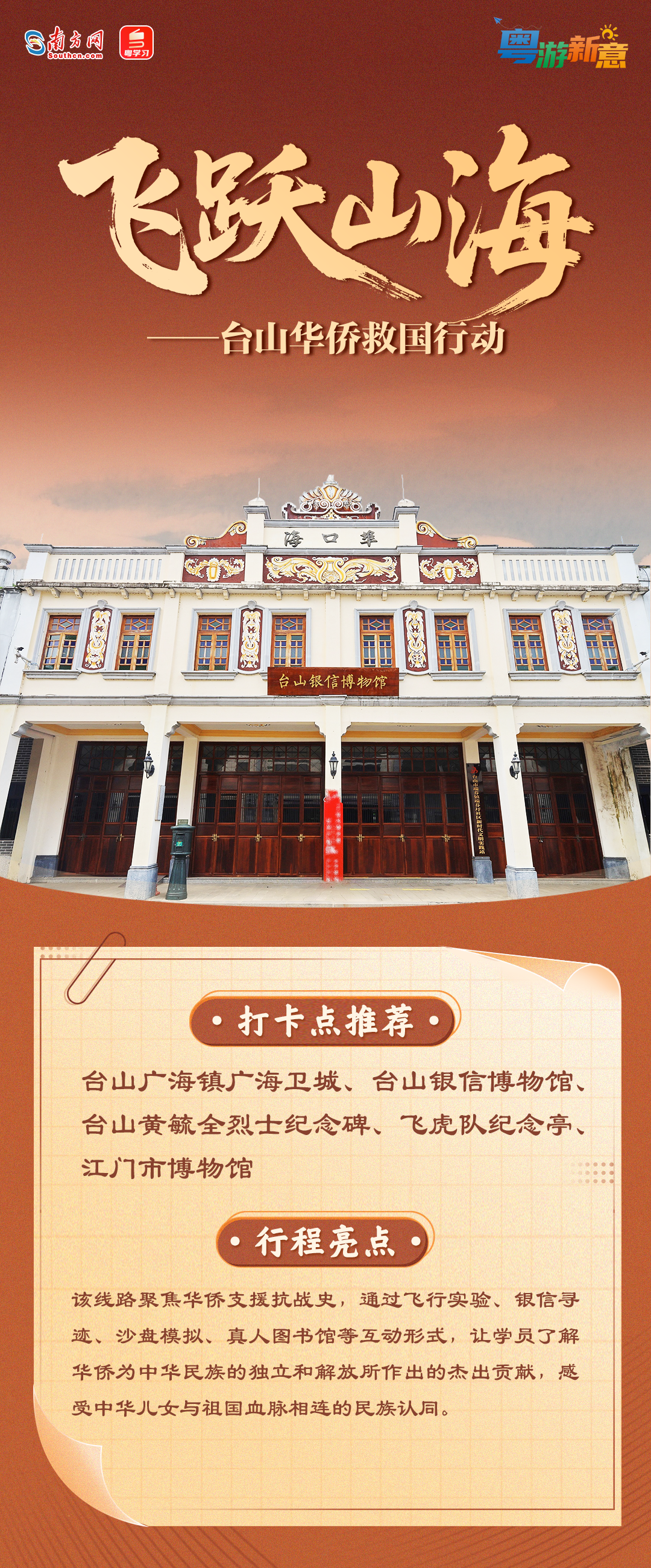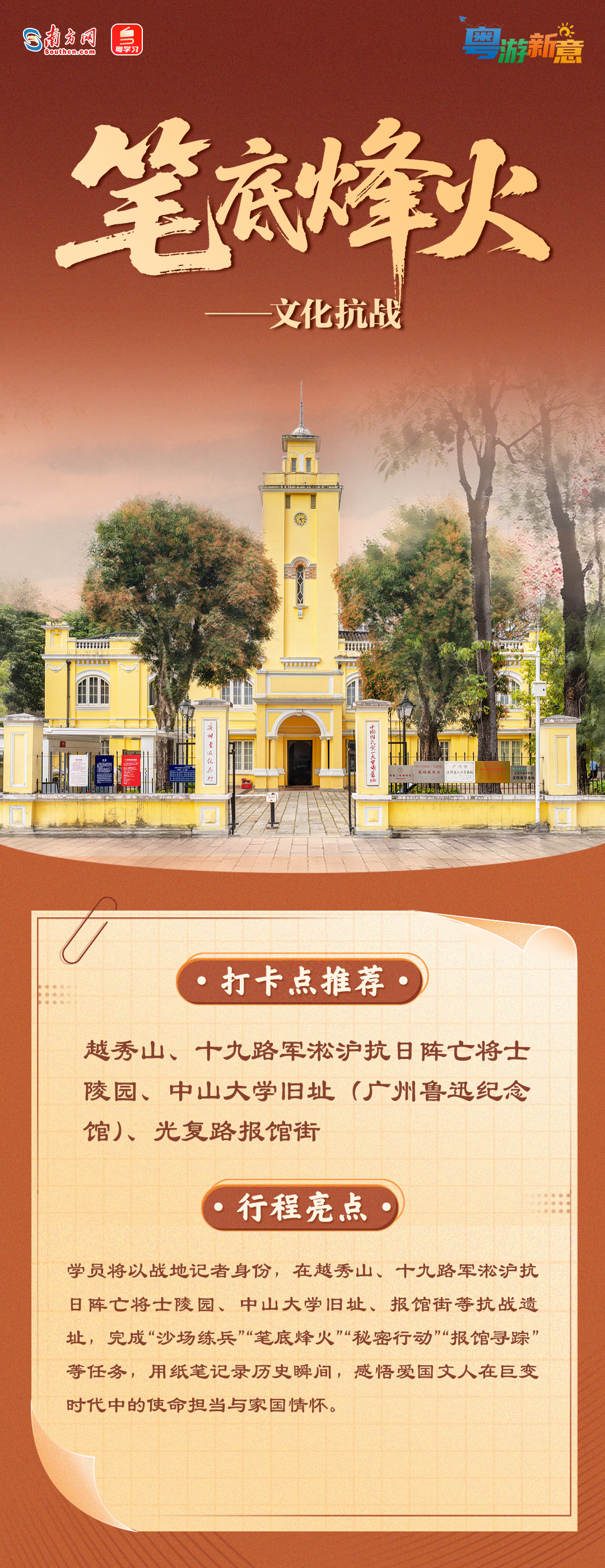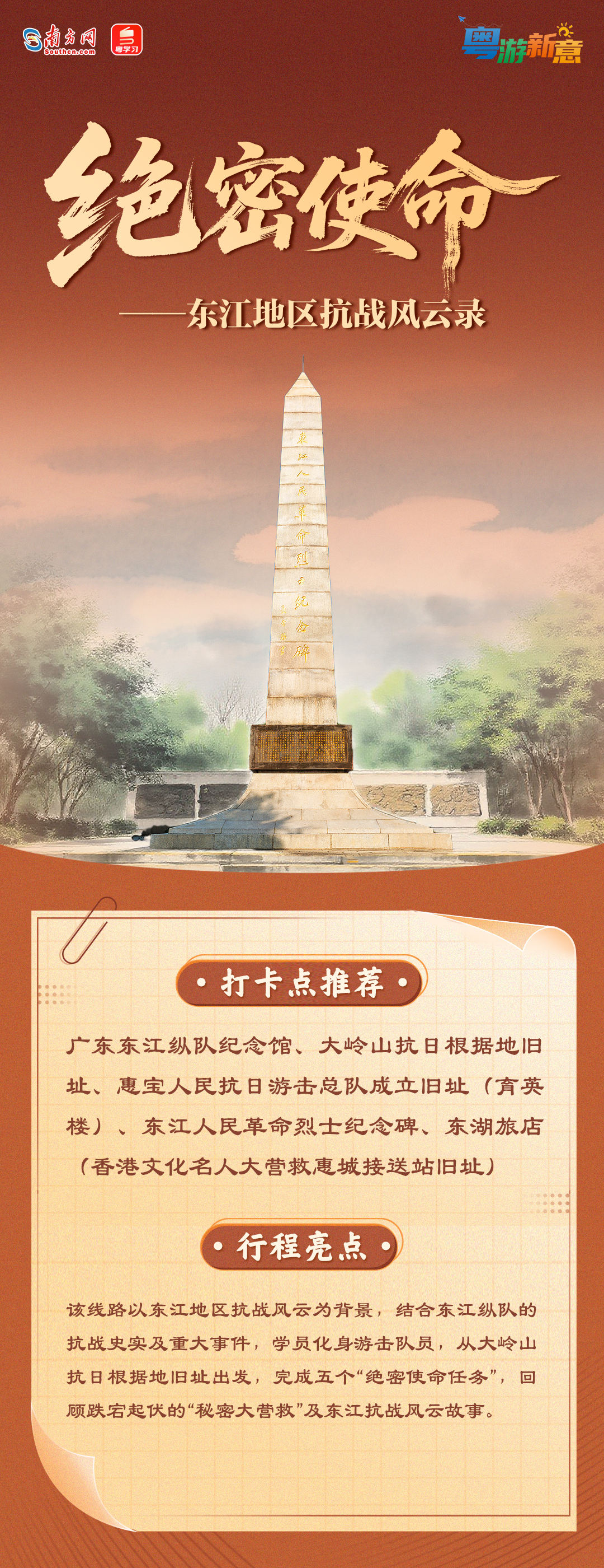 近日,3条广东抗战史迹研学线路正式发布,地点覆盖广州、东莞、惠州、江门等多个大湾区城市。据了解,这3条线路让学员以游击队员、战地记者身份,沉浸式体验抗战史迹,让抗战精神“可感、可学、可传”。