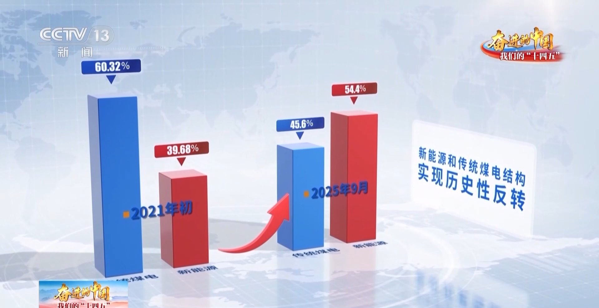 山西台记者 白天晴:发展绿色能源,是加快构建新型能源体系的关键。在国网山西电力调度控制中心的大屏幕上,实时显示着全省新能源发电数据。目前,新能源和传统煤电结构实现历史性反转。