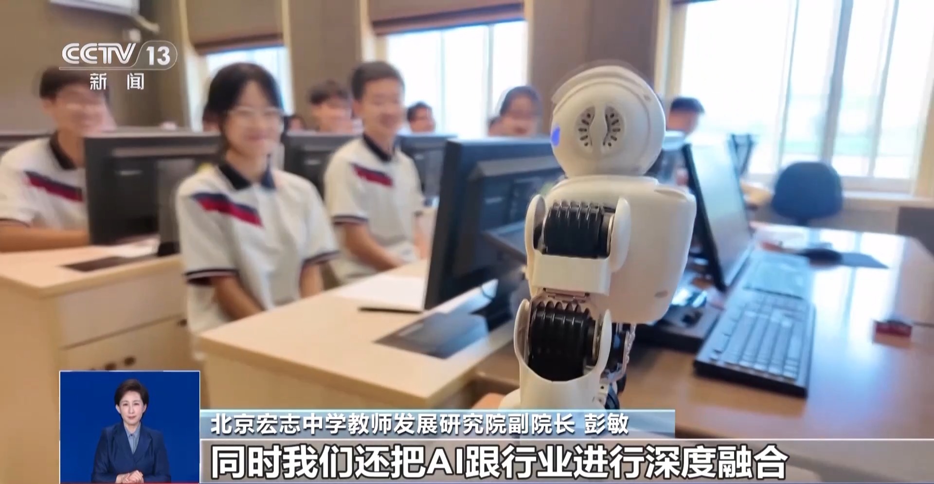北京市宏志中学教师发展研究院副院长 彭敏:到企业去参观,还有学科渗透以及数学节、科学科技节等归到第一层次,主要的目的是带领学生来认识AI;到了第二个层次,我们开设了像把AI跟学科进行深度融合,同时还把AI跟行业进行深度融合开设一些课程;第三个层次是提高层,是针对学有特长的学生进行培养。