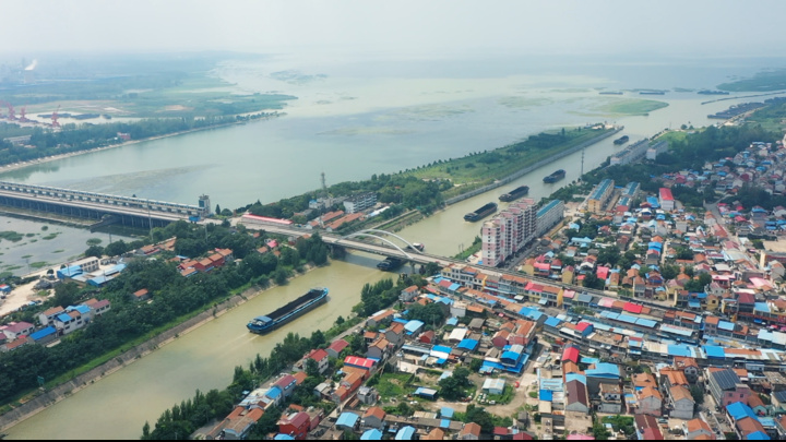 站在山东省济宁市微山县韩庄镇的韩庄运河桥上远眺,一侧是水天相接、烟波浩渺的微山湖,另一侧是奔流千年、一路东去的大运河。