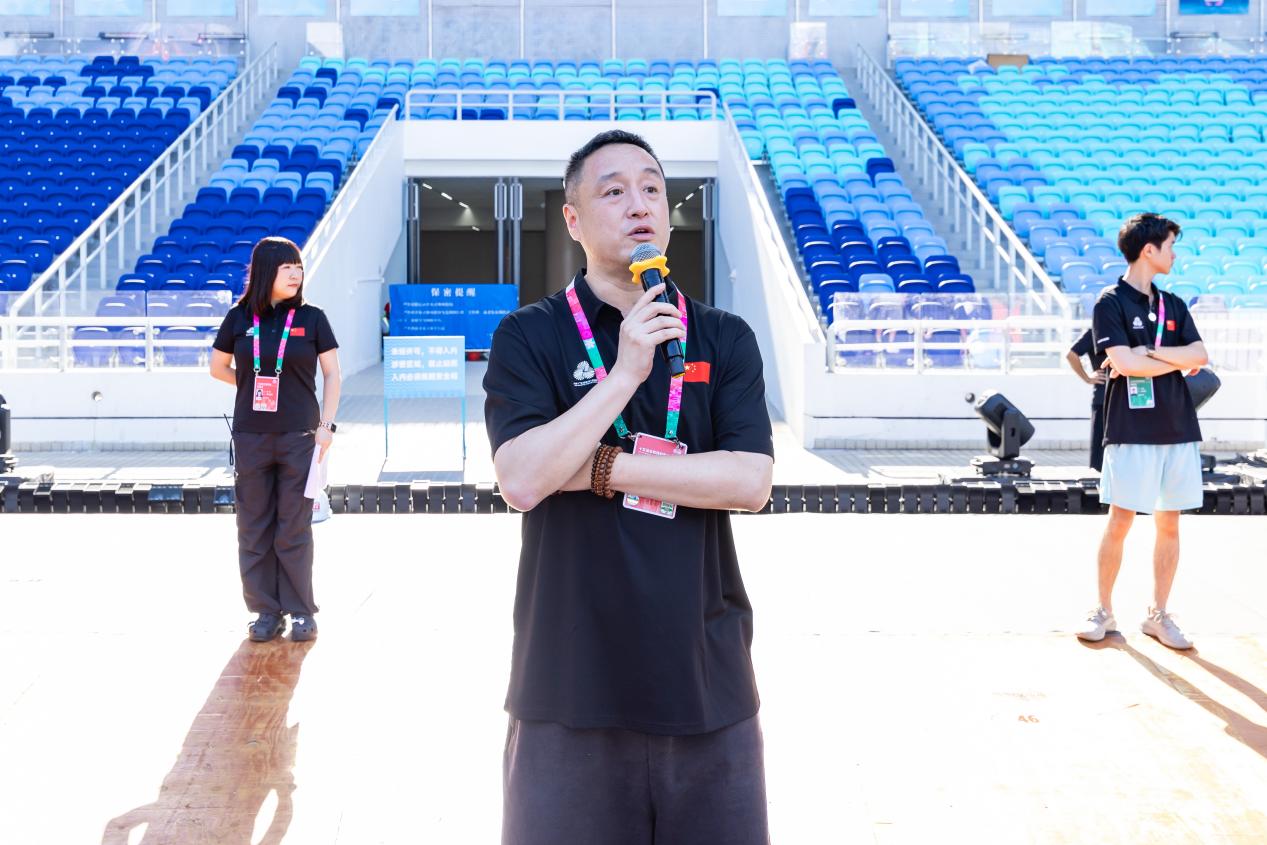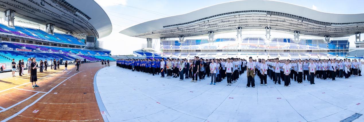 本次场内排练得以高效推进,得益于数支保障团队的专业支撑与无缝协作。从工程建设到市政协调,从水电供应到应急处置——中建八局、市重点办、场馆保障、电力部门、安全保卫、交通保障、餐饮团队、医疗卫生机构、物业管理、属地街道,再到仪式与展演团队、主创团队,每一支保障力量,都克服各种困难,主动补位担当,用专业、高效、细致周到的工作提供全方面保障。