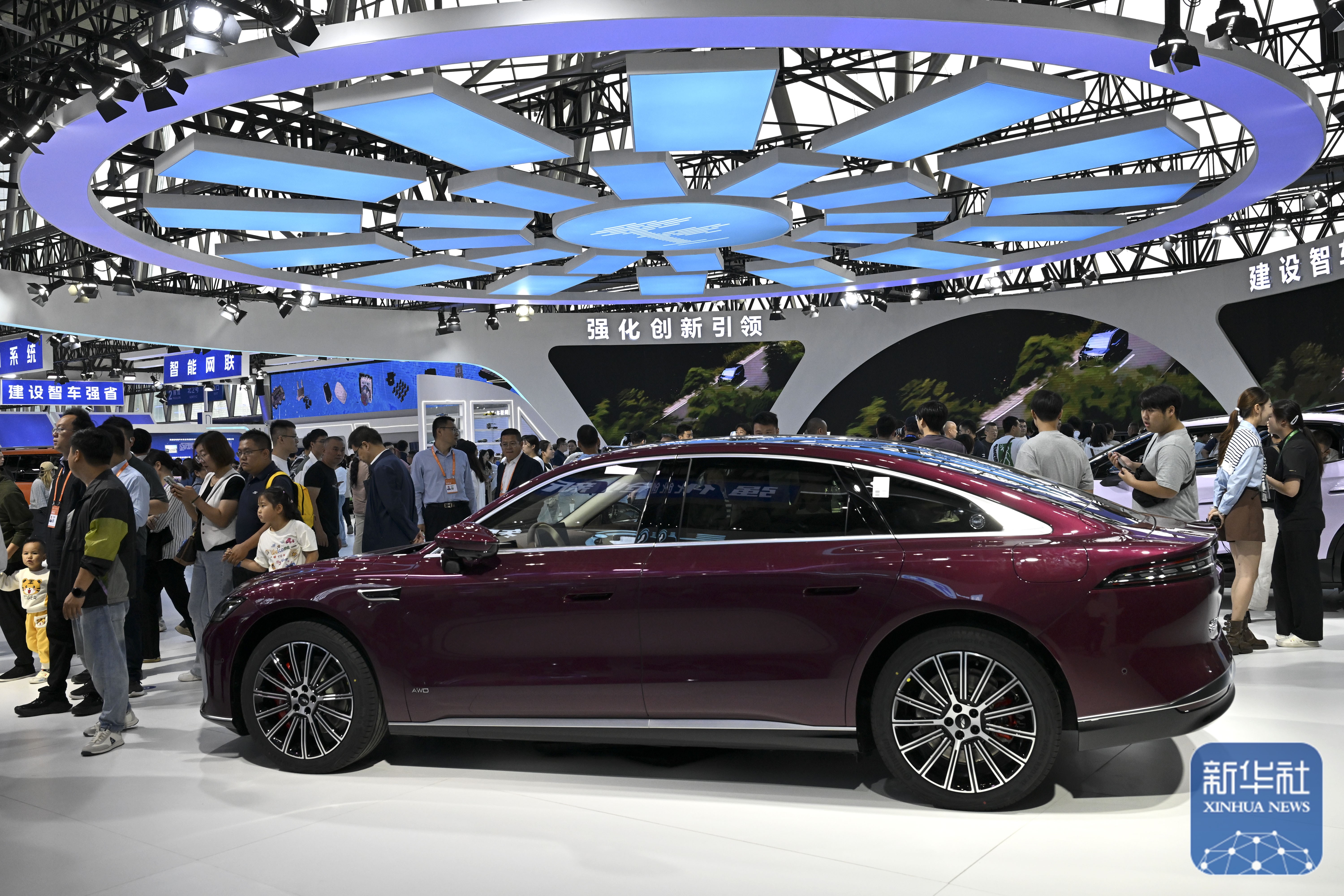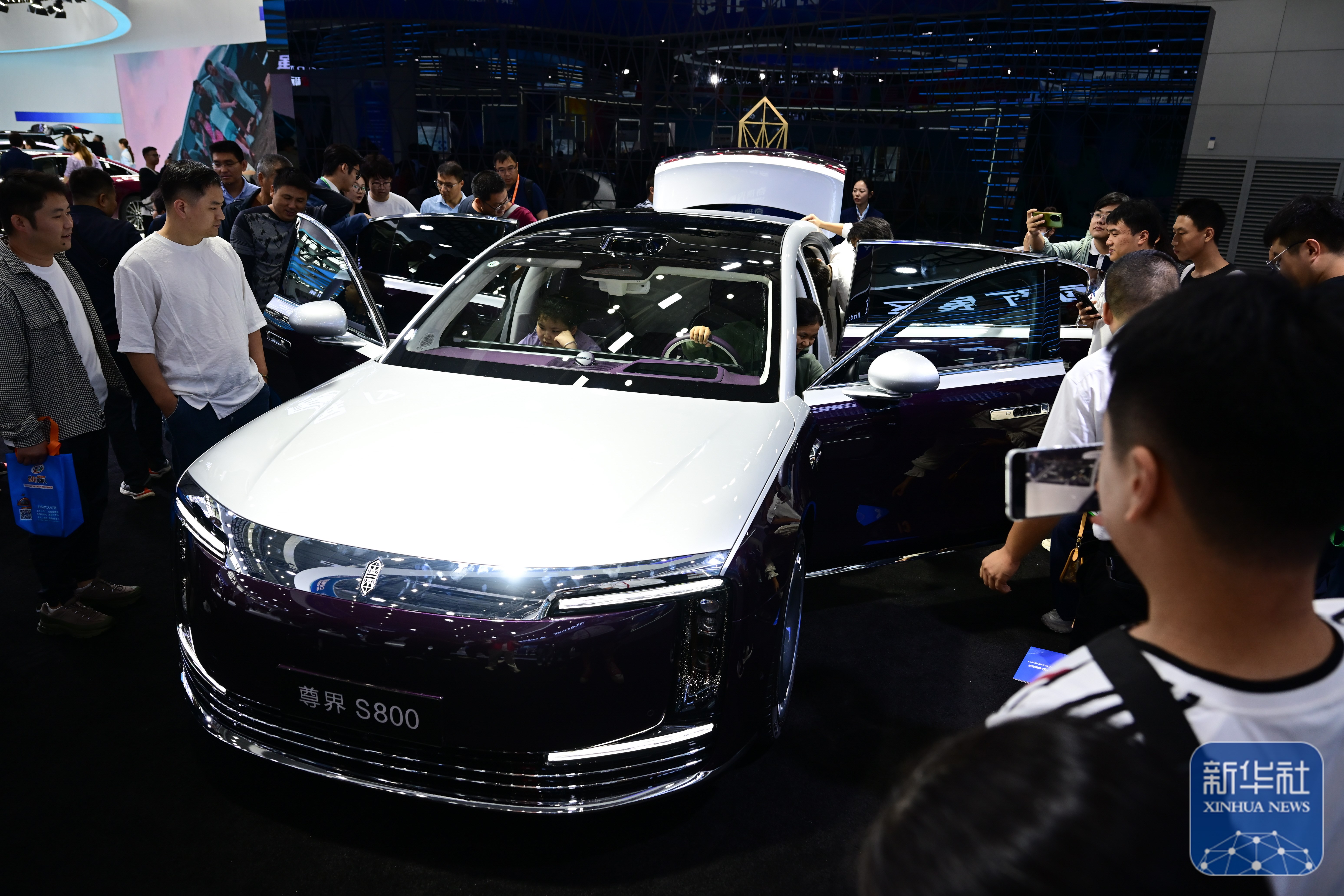 ↑ 9月20日,观众在2025世界制造业大会智能网联新能源汽车展区参观。新华社记者 周牧 摄