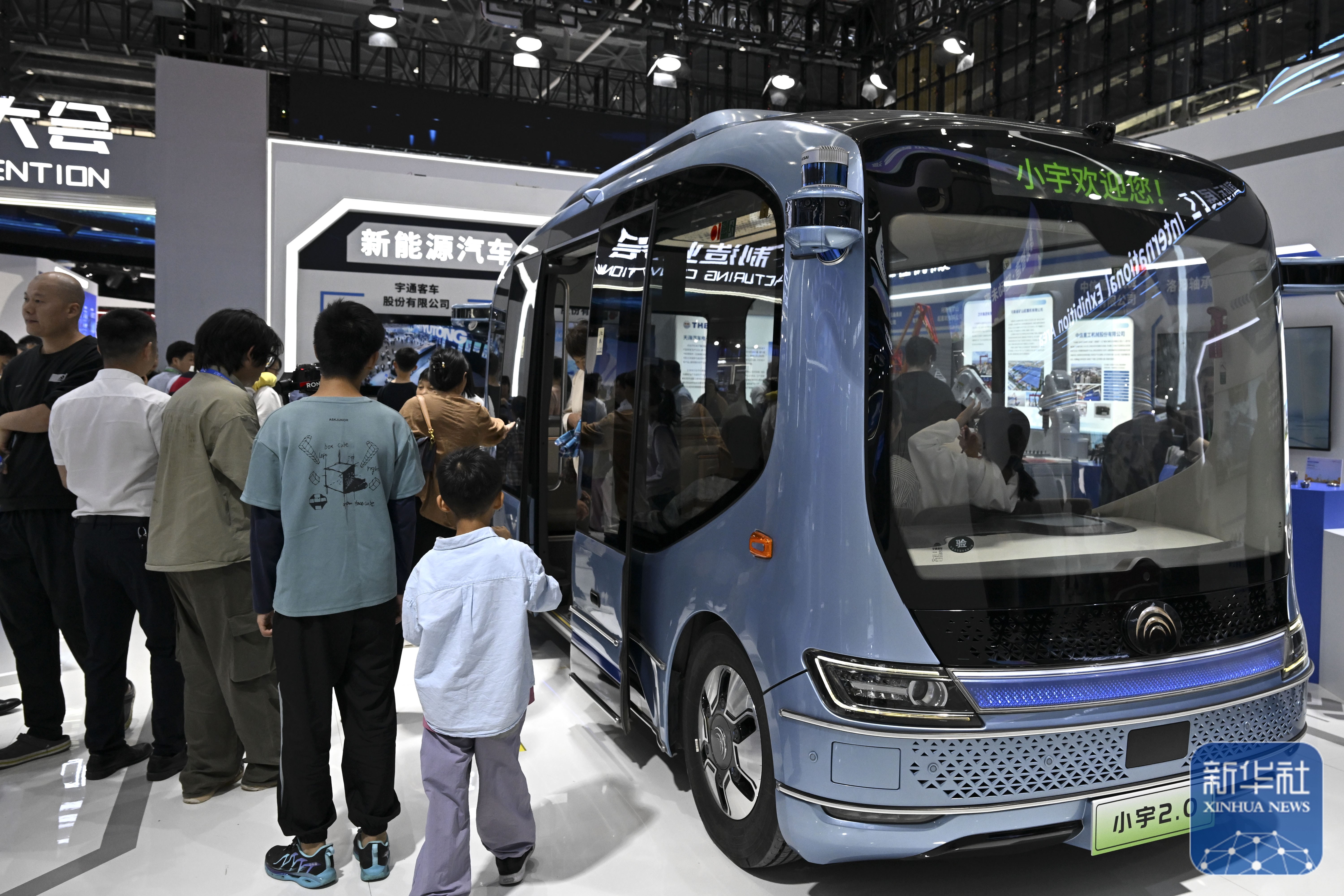 ↑ 9月20日,观众在2025世界制造业大会上参观体验一款自动驾驶巴士。新华社记者 黄博涵 摄