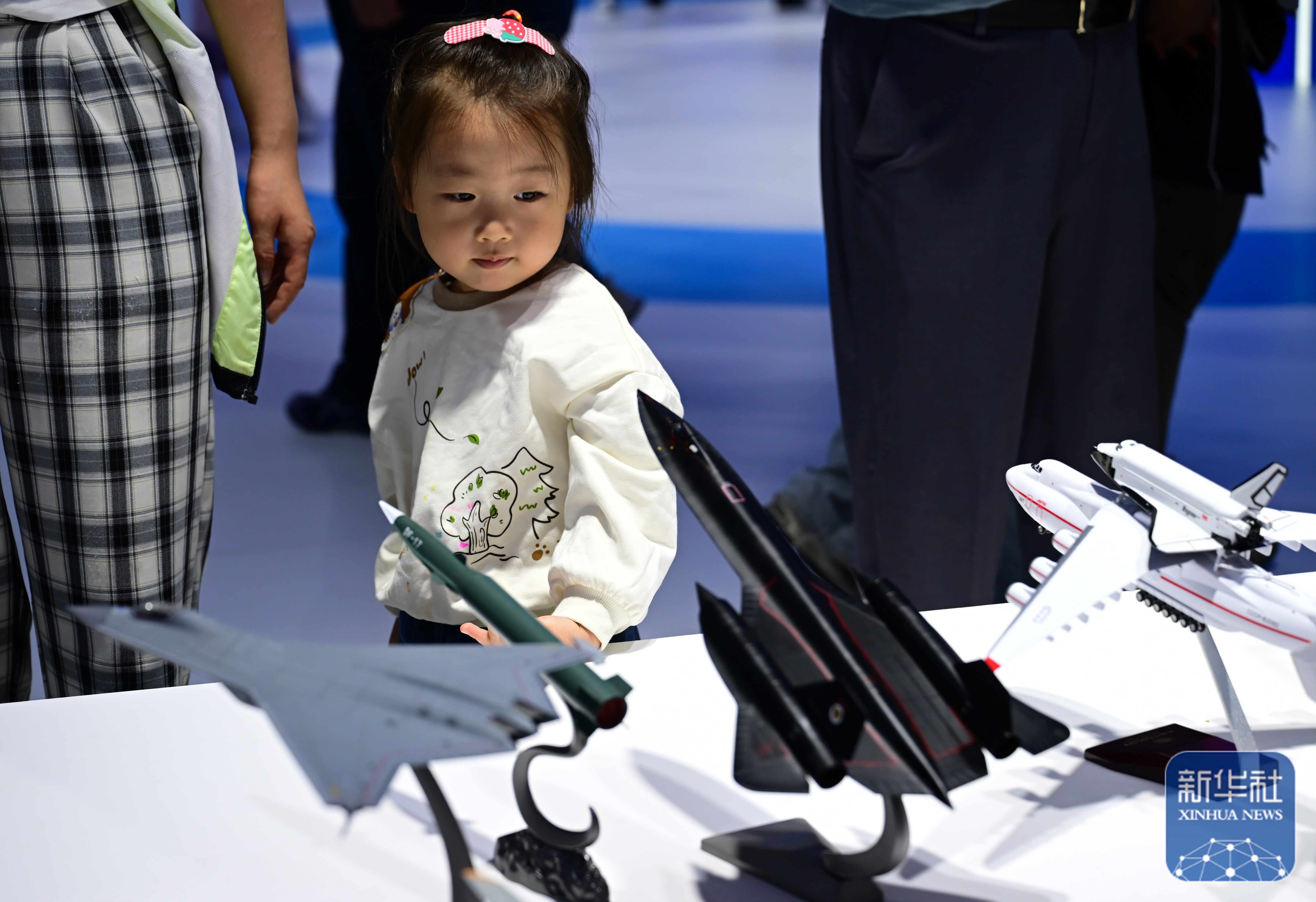 ↑ 9月20日,小朋友在2025世界制造业大会上观看飞机模型。新华社记者 周牧 摄