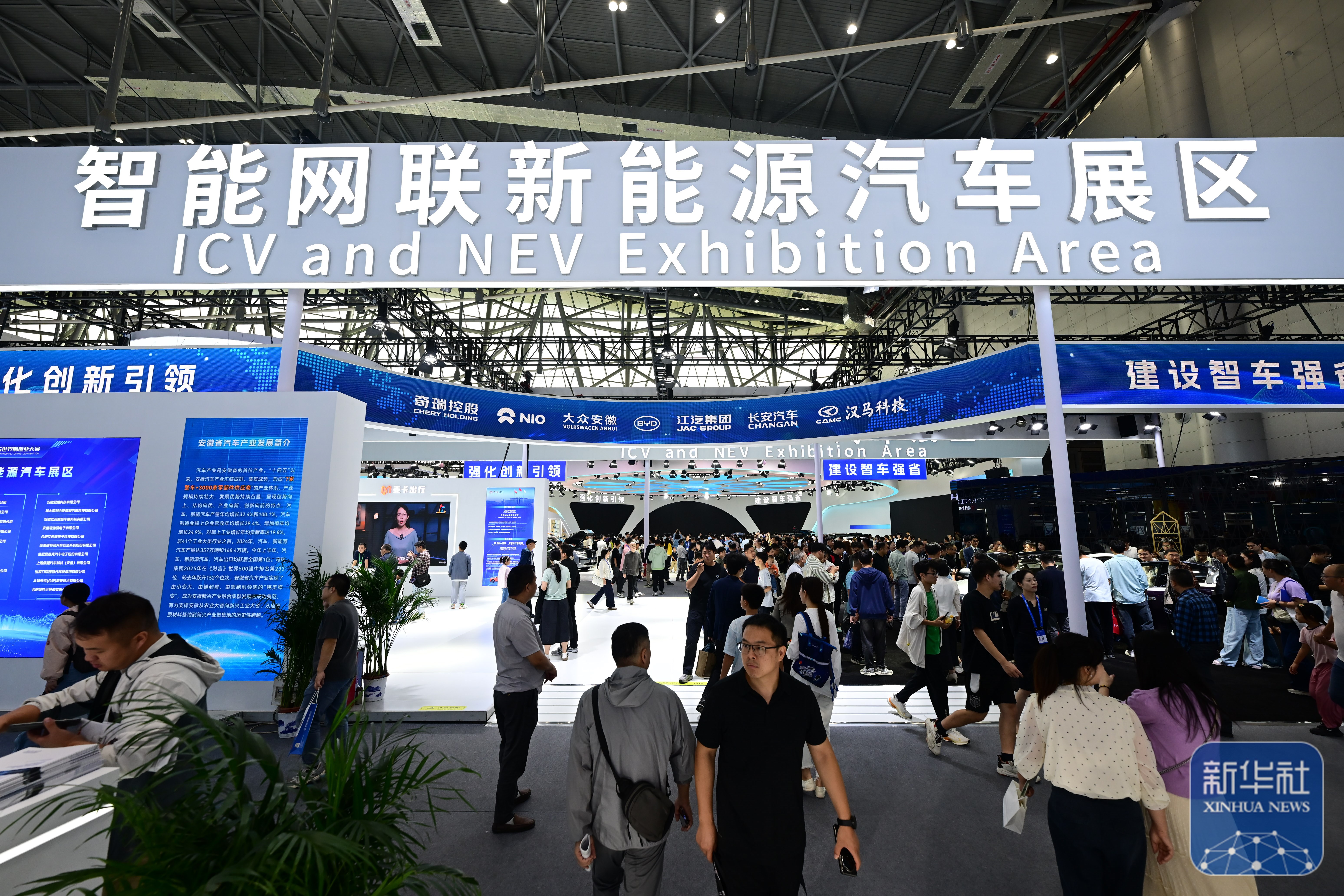 ↑ 9月20日,观众在2025世界制造业大会上参观智能网联新能源汽车展区。新华社记者 黄博涵 摄