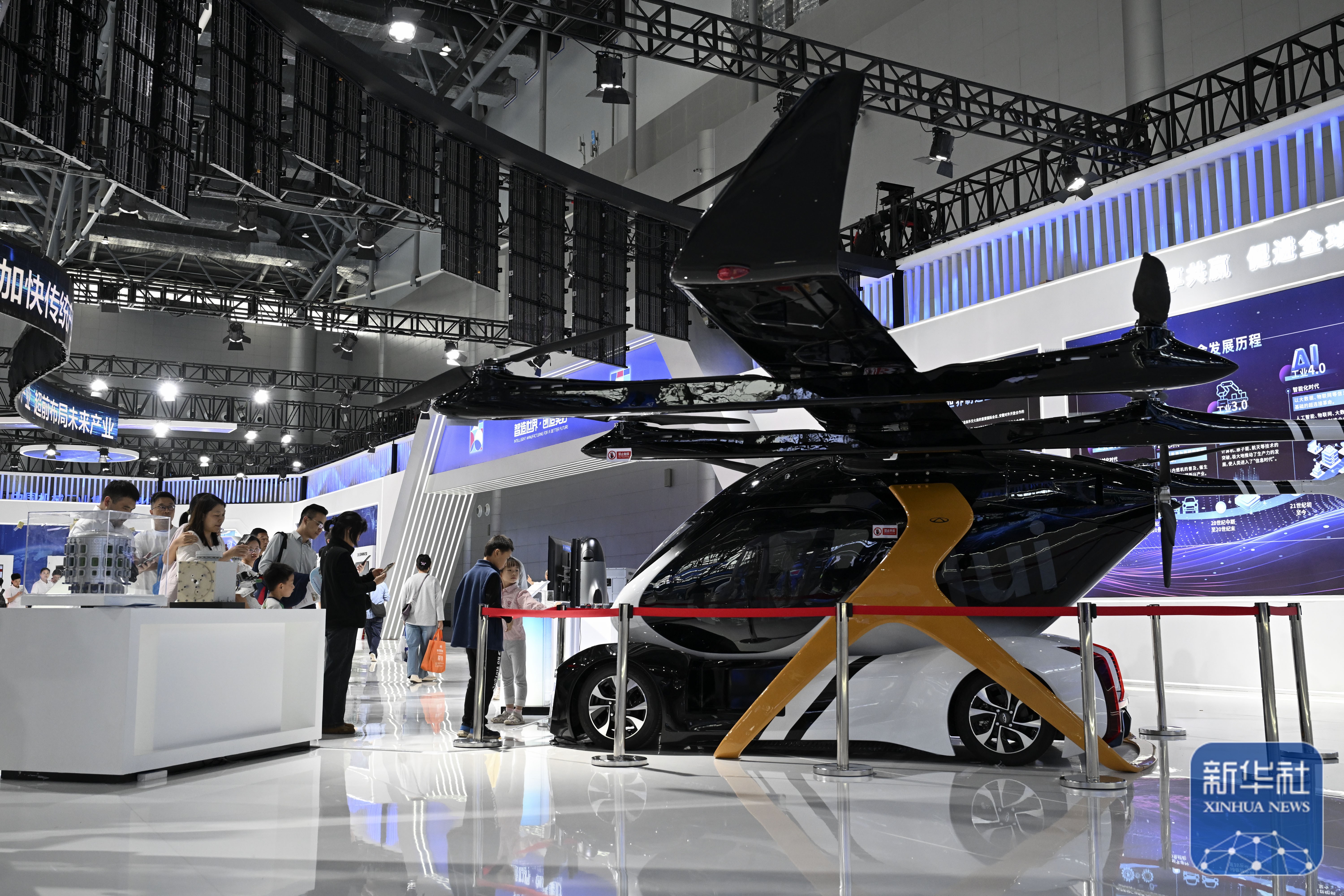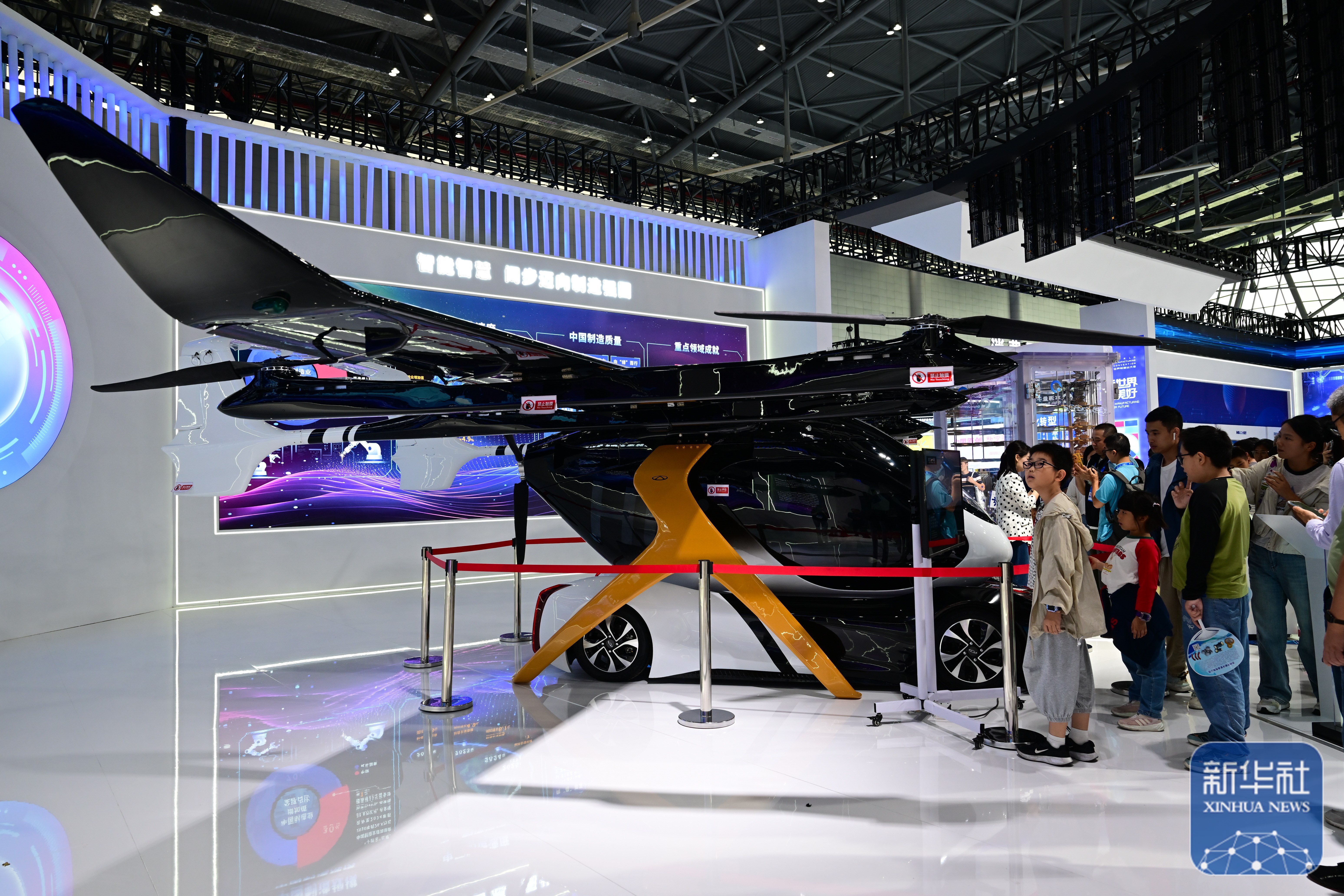 ↑ 9月20日,观众在2025世界制造业大会上参观一款飞行汽车。新华社记者 黄博涵 摄