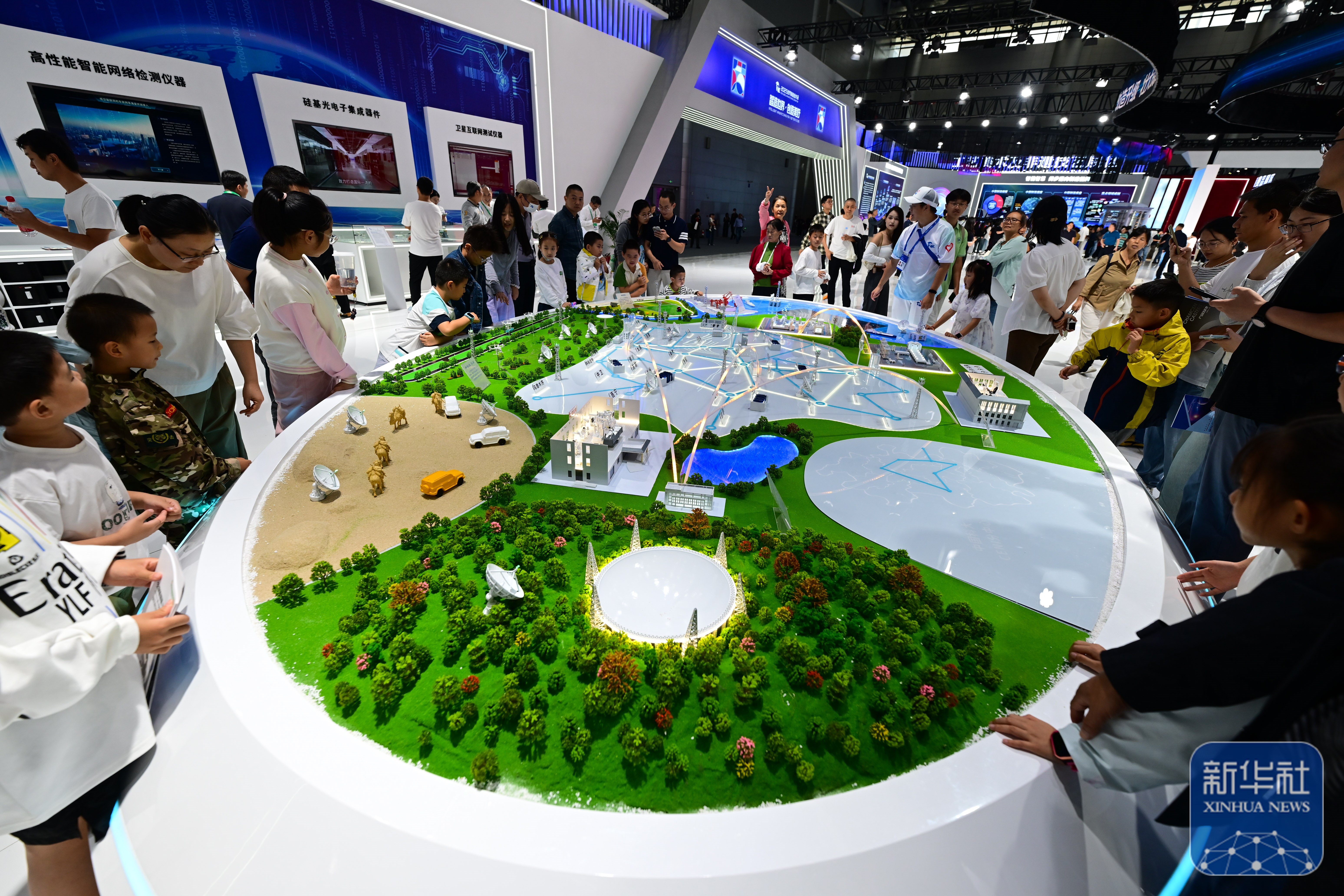 ↑ 9月20日,观众在2025世界制造业大会上参观未来网络沙盘。新华社记者 周牧 摄