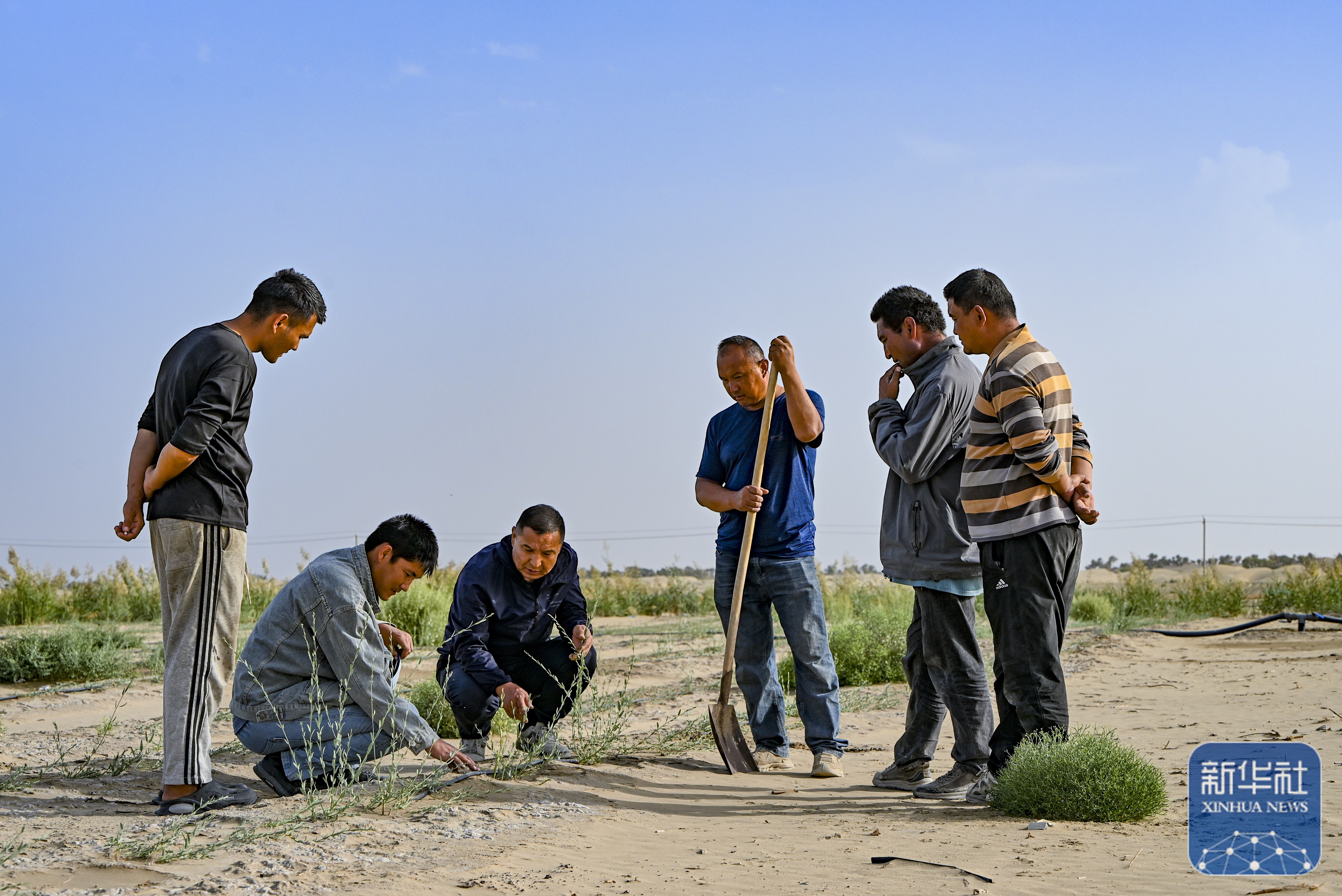 罗布麻具有耐旱、耐盐碱、耐寒暑、抗风沙、生态适应能力强等特点。当地规划罗布麻治沙技术区,采用种植罗布麻生物固沙和铺设草方格工程治沙的模式,减缓沙漠流动速度,阻隔沙漠对绿洲的侵袭。同时,当地建设罗布麻产业园,推动罗布麻在纺织、保健品等产业应用,带动当地1000余人就业增收。
