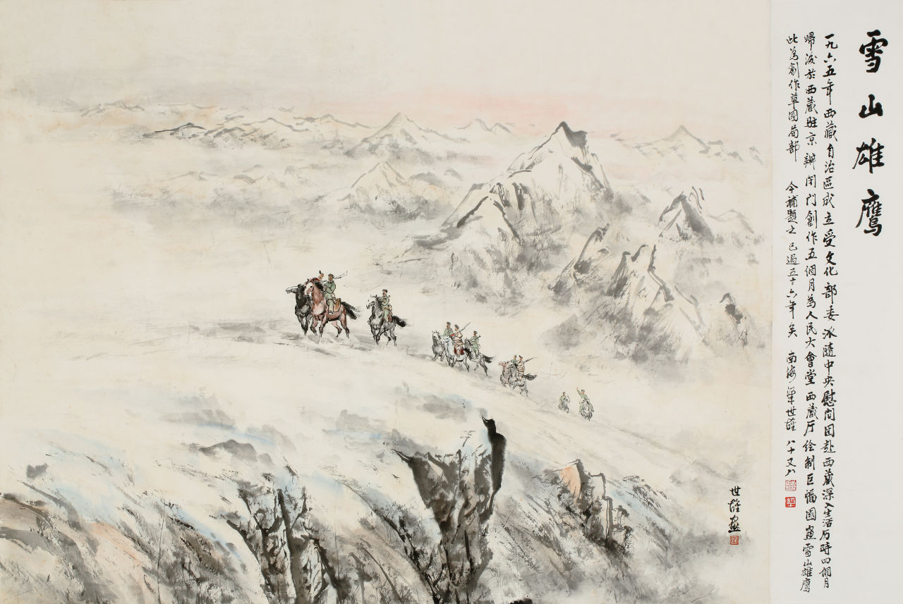 西藏之行影响了艺术家的创作走向。擅长人物画的梁世雄,在1970年代转向山水画。1979年创作的《高原江南》中有他的标志性符号——骑马的人。1983年,他创作了水墨山水画《布达拉宫》,从侧面展示宫殿矗立于山巅的雄伟。在梁江看来,这些画作“气派都很大”,是入藏经历改变了一个人的精神气度。