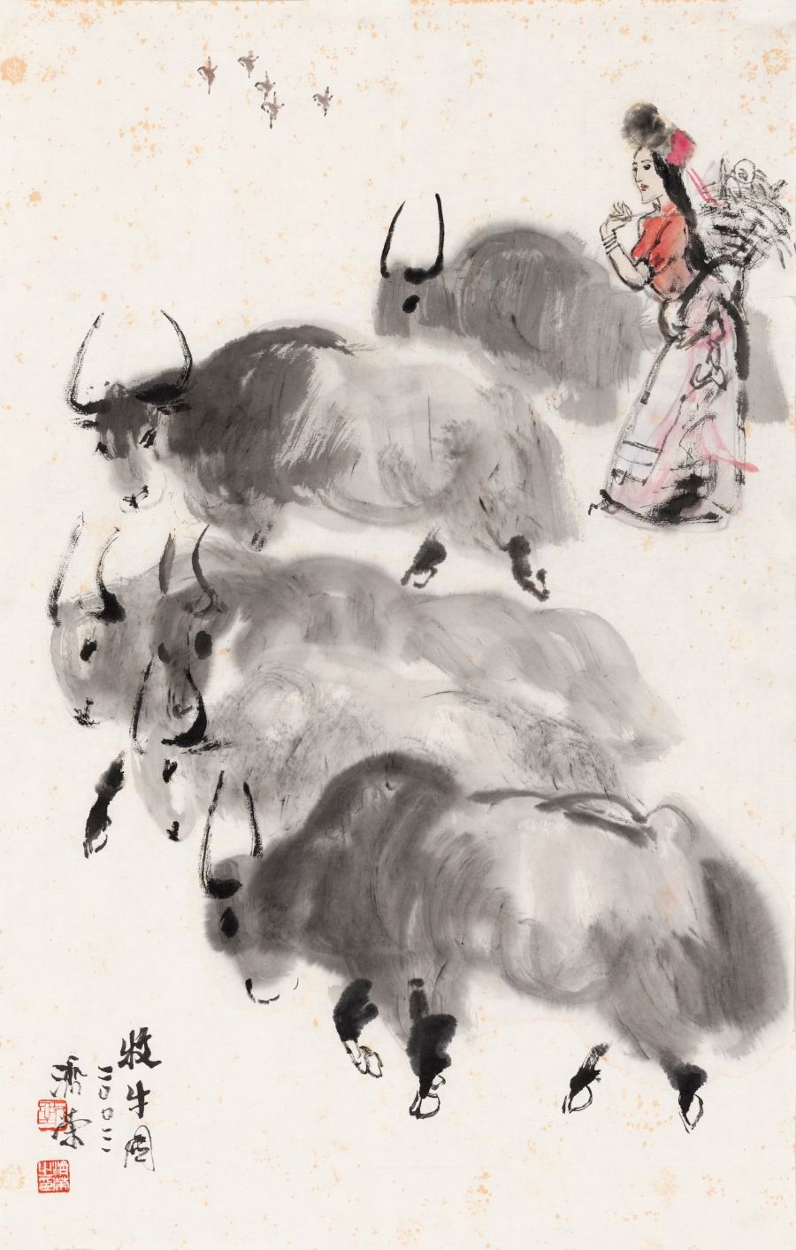 到了1990年代后期,刘济荣又开始画家乡岭南地区的水牛。他自称“牧牛人”,还写了一首打油诗:“生在牛村认牛命,只识画牛不吹牛。”牛成为他作品的代表符号。2016年,刘济荣去世。次年,一本回顾他艺术人生的著作出版,书名就叫《犇——刘济荣谈艺录》。