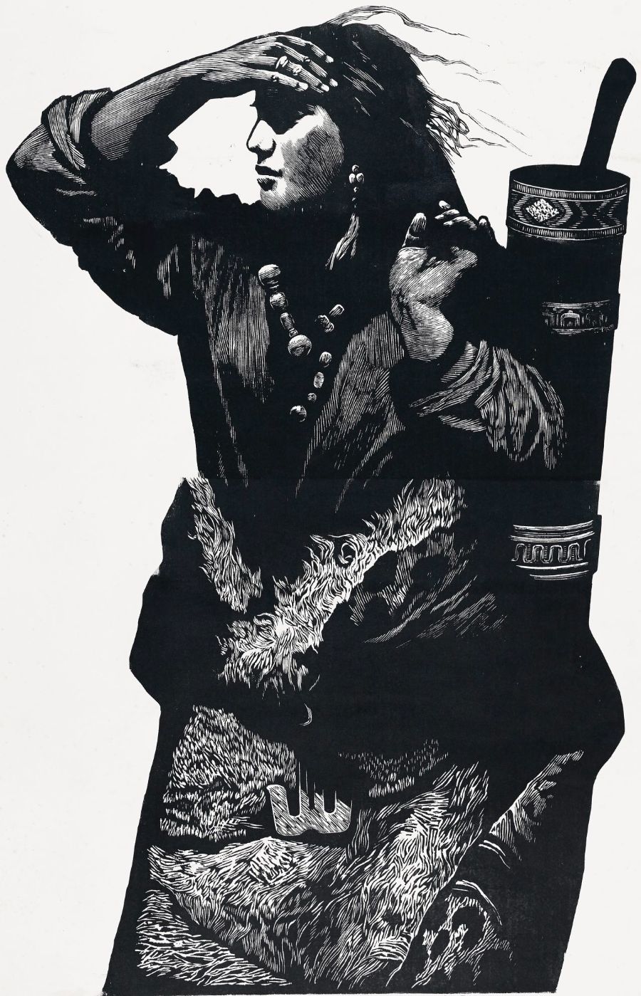 李焕民《守望》 ,黑白木刻,2014年。受访者供图