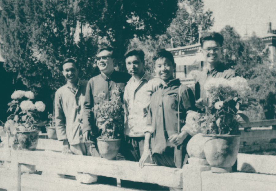 其加达瓦向梁世雄展示了一张他一直收藏的合影,上面有梁世雄、牛文、姚耕云、其加达瓦、杜英信。那是他们一起参加在达赖喇嘛的夏宫罗布林卡举办的游园活动,也是三省艺术家少有的聚会时刻。