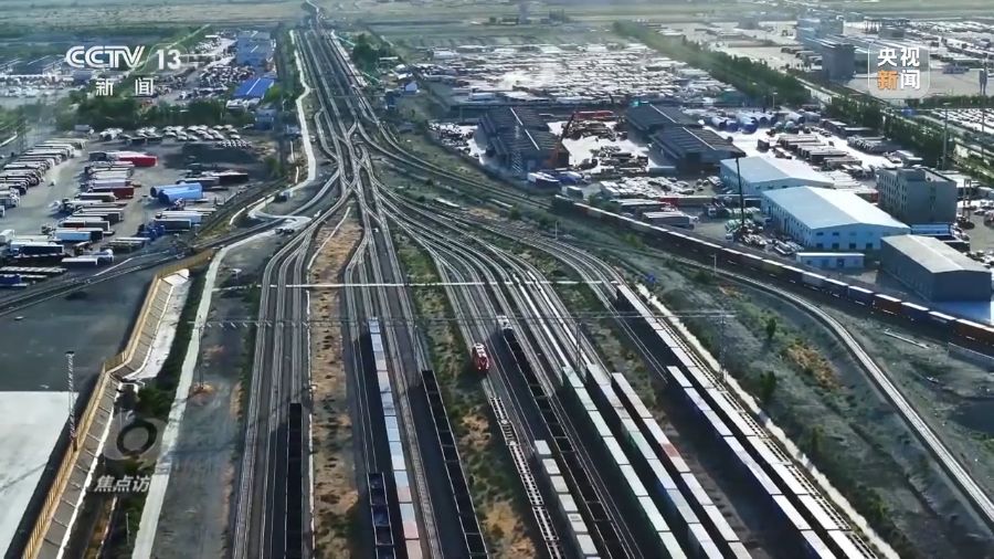 今天的新疆,早已不是封闭偏远的西北边陲,而是向西开放的前沿和服务国家新发展格局的战略支点,它拥有5700公里边境线,19个对外开放的口岸。在边境口岸城市霍尔果斯,如今平均一小时就有一列满载的列车出入境。从2016年,第一列中欧班列过境霍尔果斯站,不到10年,已有超过47000列中欧(中亚)班列经过。