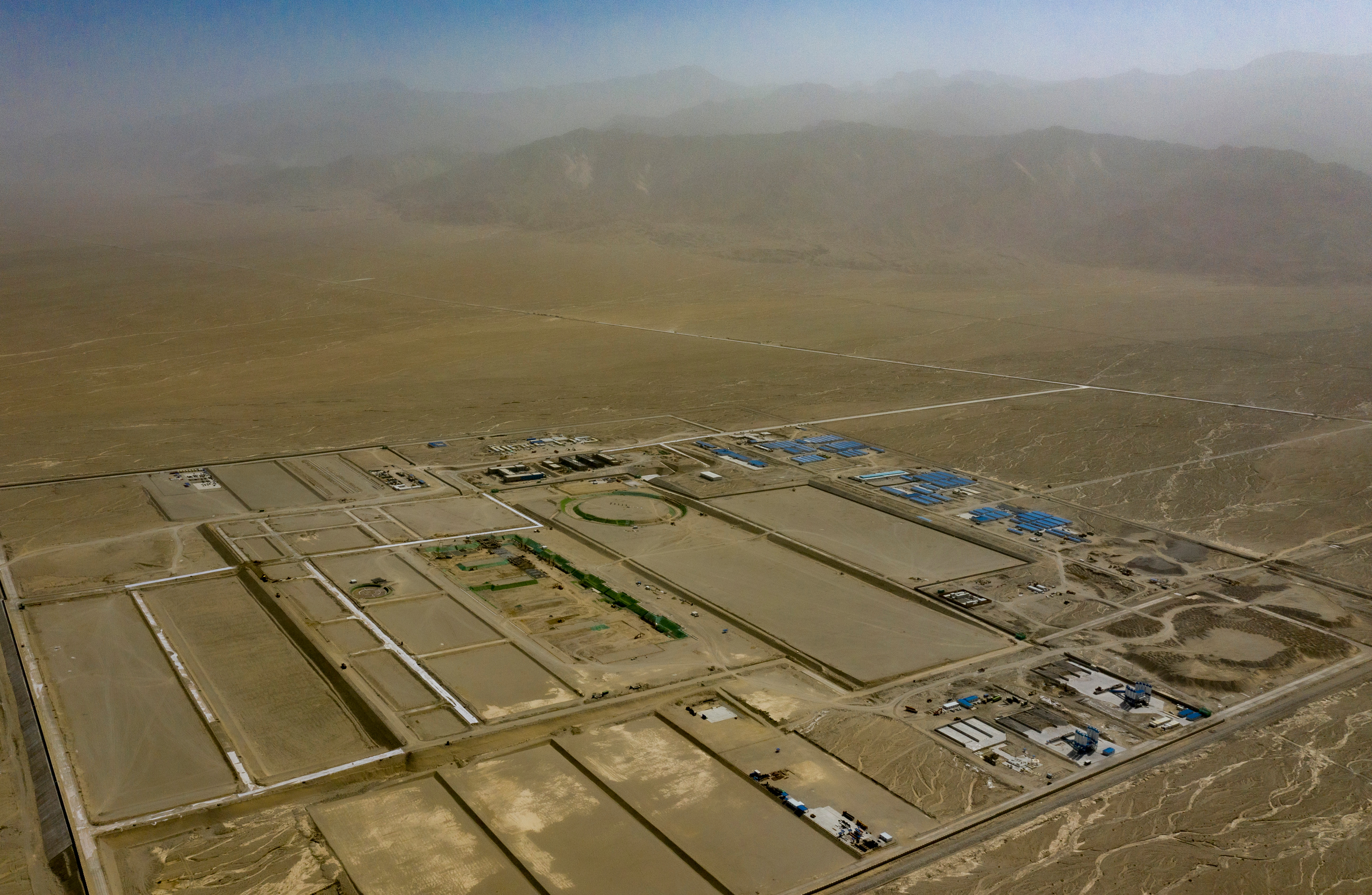 9月22日在新疆巴音郭楞蒙古自治州若羌县拍摄的中国绿发新疆中绿电若羌400万千瓦光伏项目(无人机照片)。