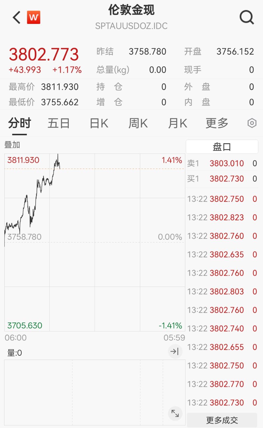 现货黄金突破3810美元/盎司 黄金概念股午后拉涨