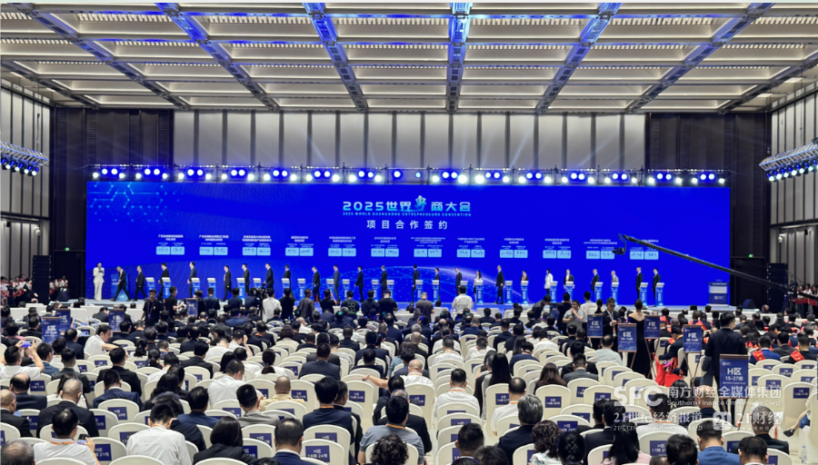 9月29日,2025世界粤商大会在广州开幕。大会现场,人工智能、半导体、网络与通信等领域共计24个项目签约,项目总投资额达444.58亿元。