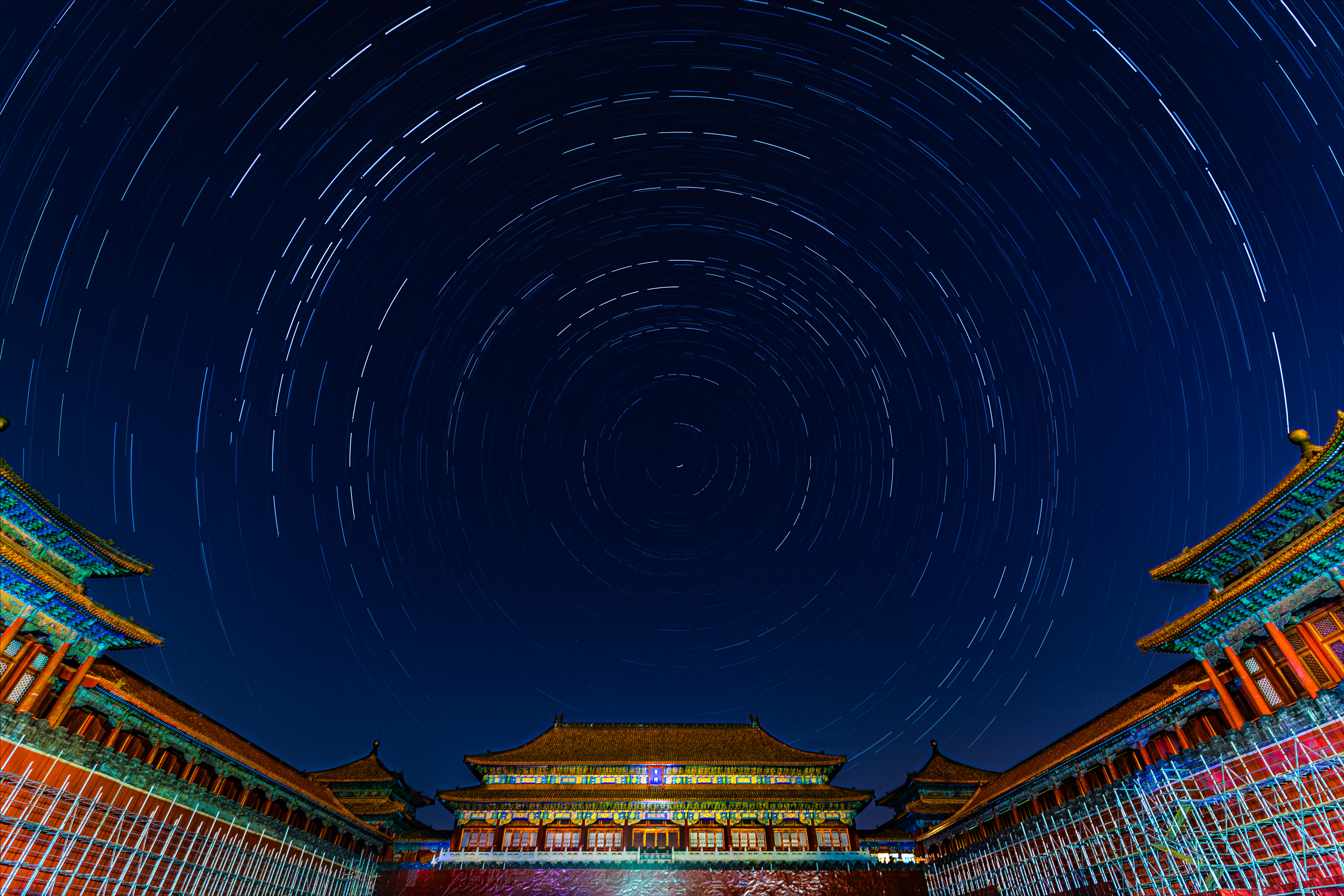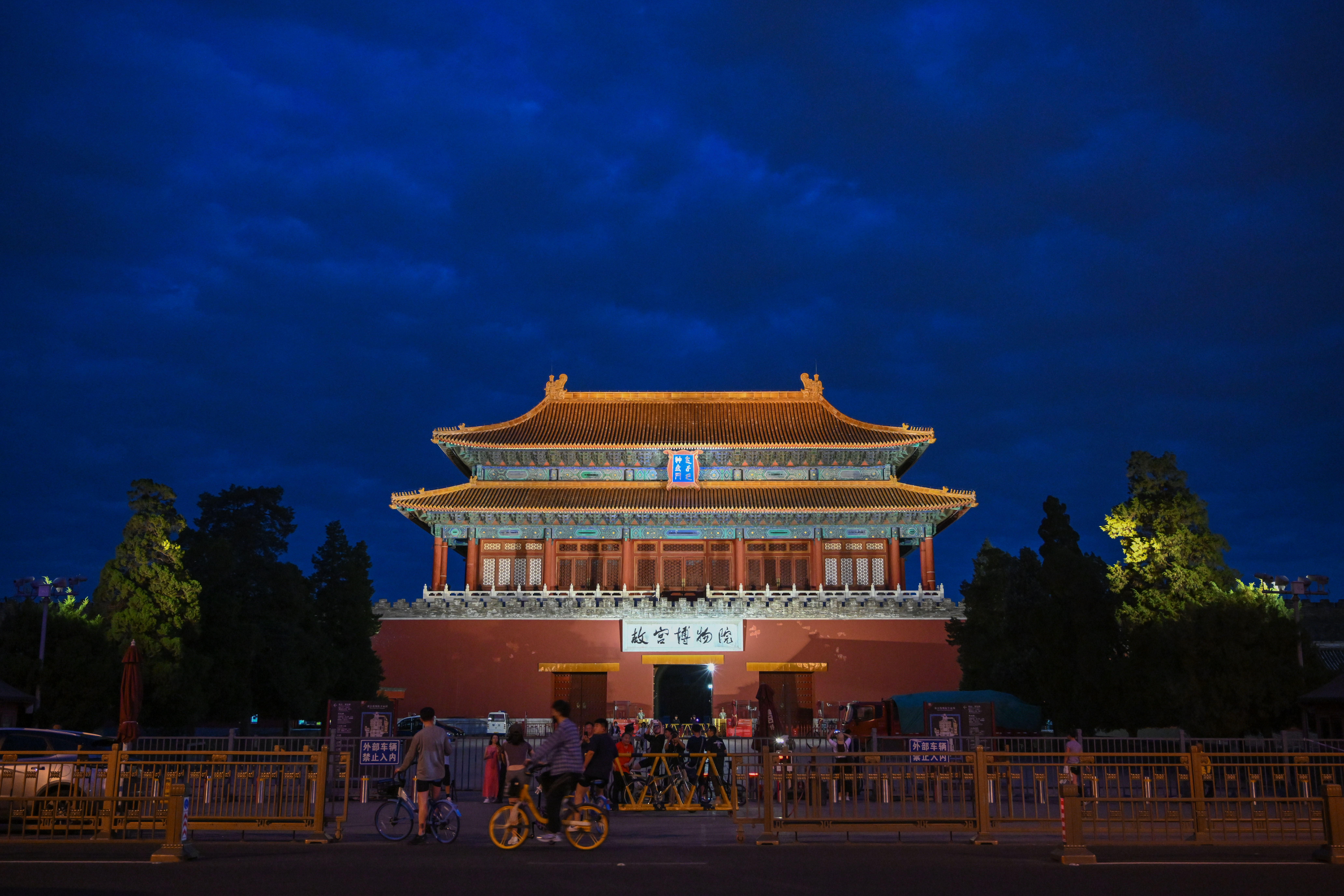 2019年/故宫角楼上的骑凤仙人、圆月与红灯笼/摄影:金良快
