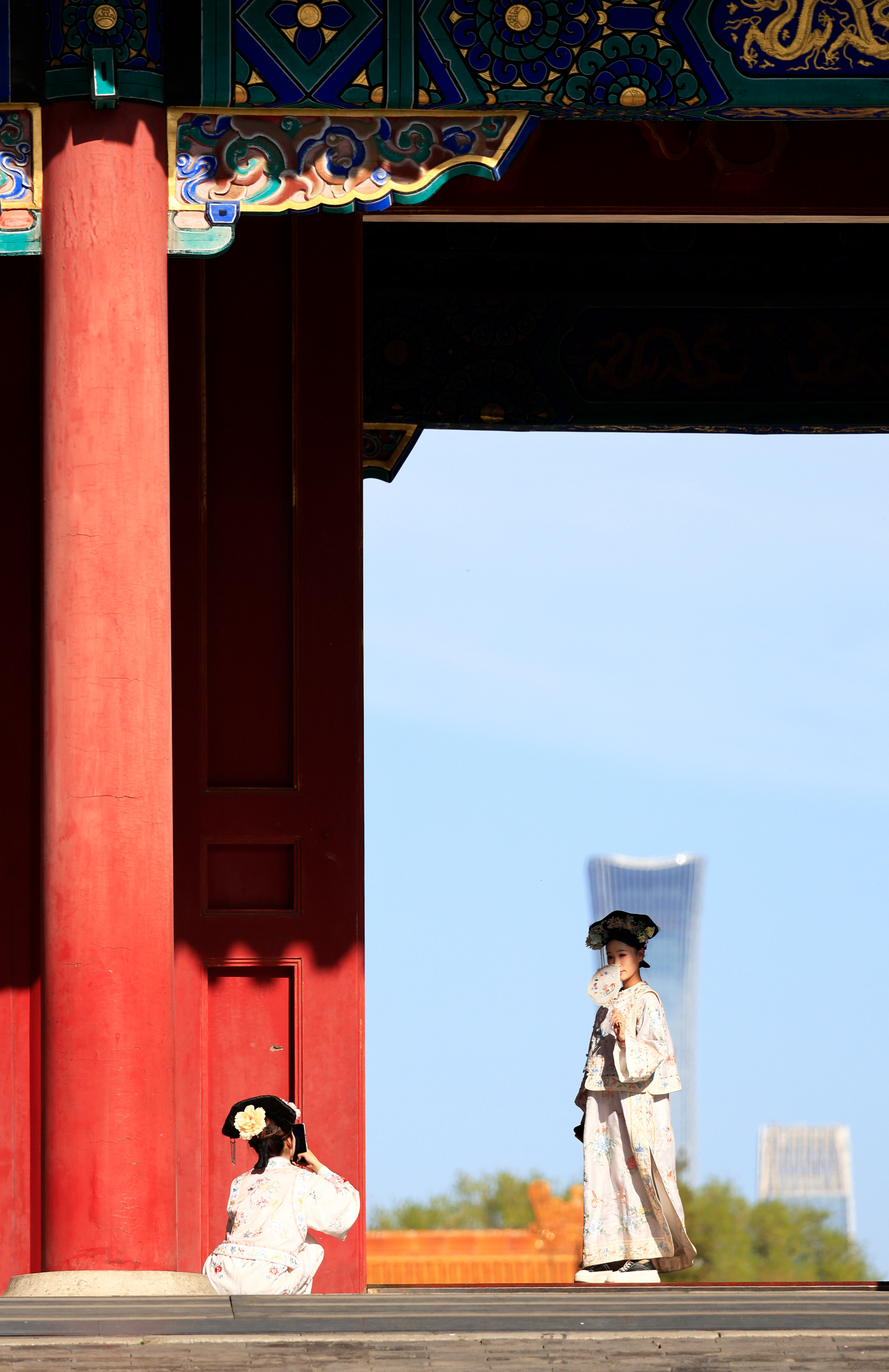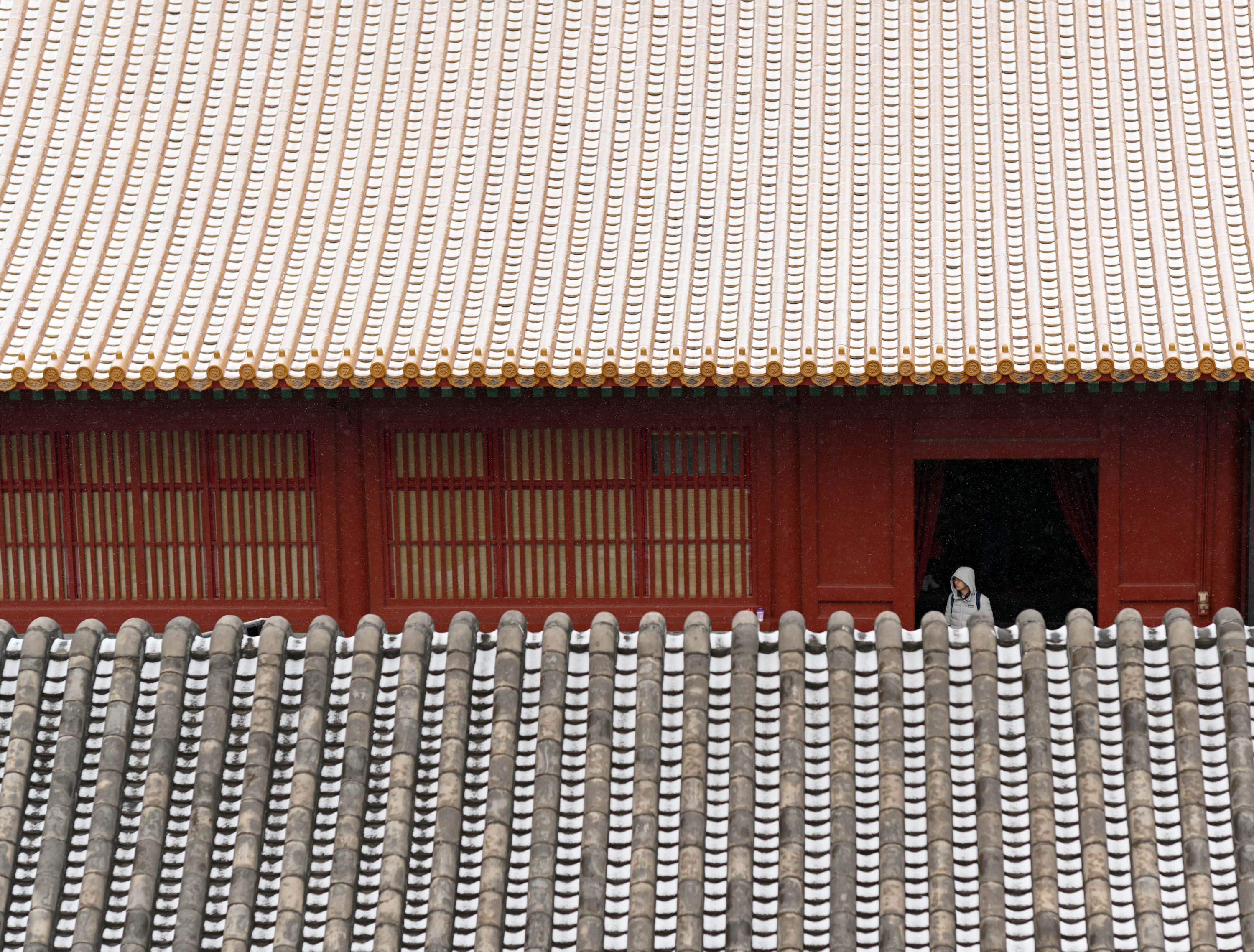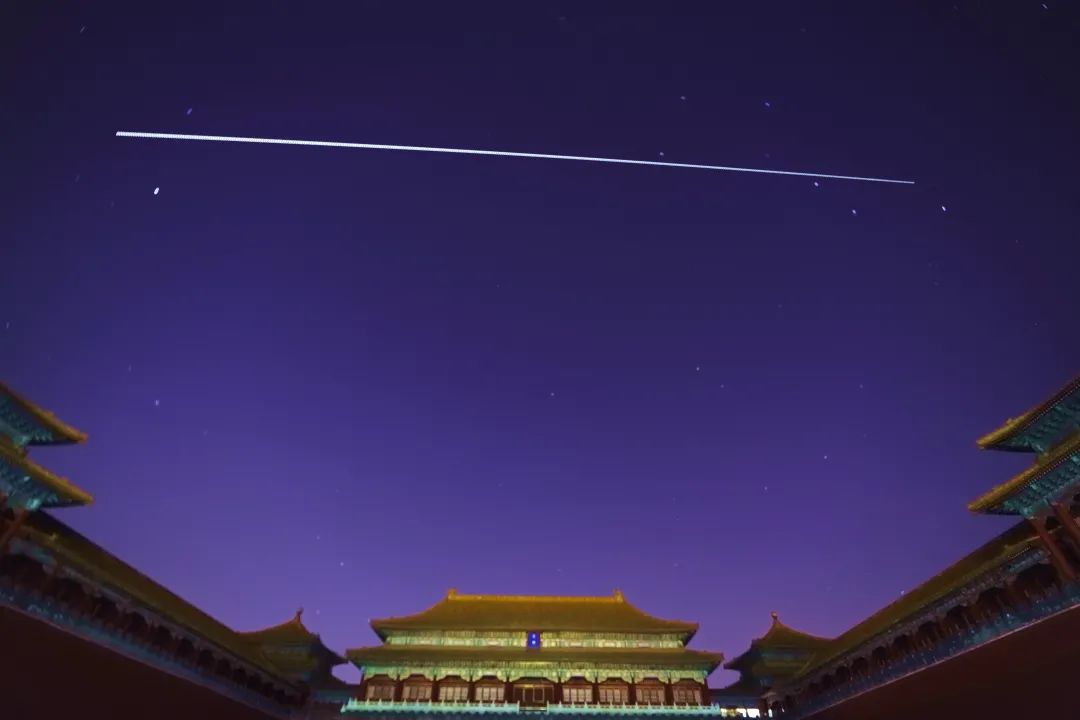 2025年/纪念中国人民抗日战争暨世界反法西斯战争胜利80周年大会在北京隆重举行,空中护旗梯队与故宫“同框”/摄影:王婧嫱