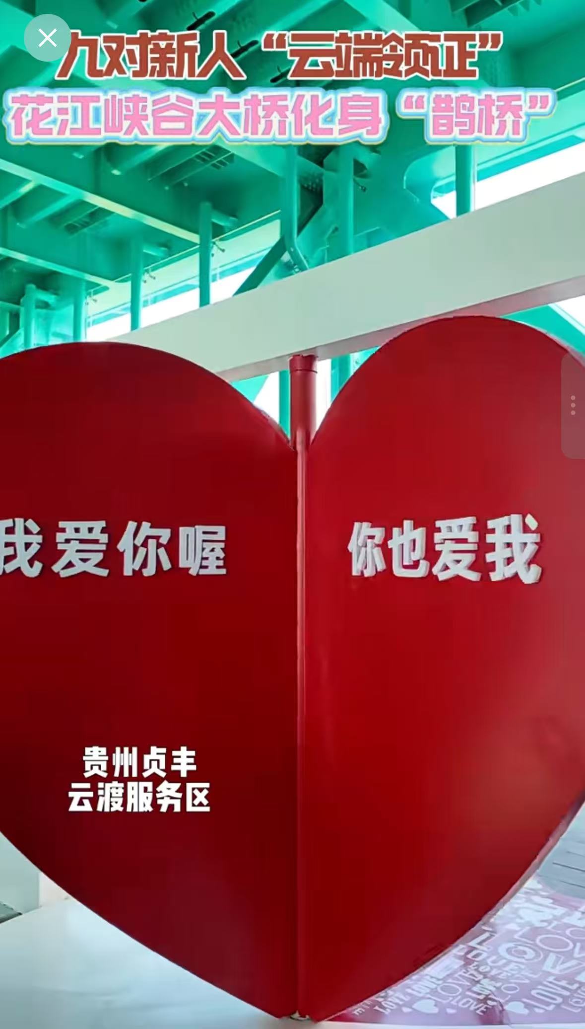 (花江峡谷大桥云渡服务区设置了婚姻登记巡回点,贞丰县官方媒体报道)