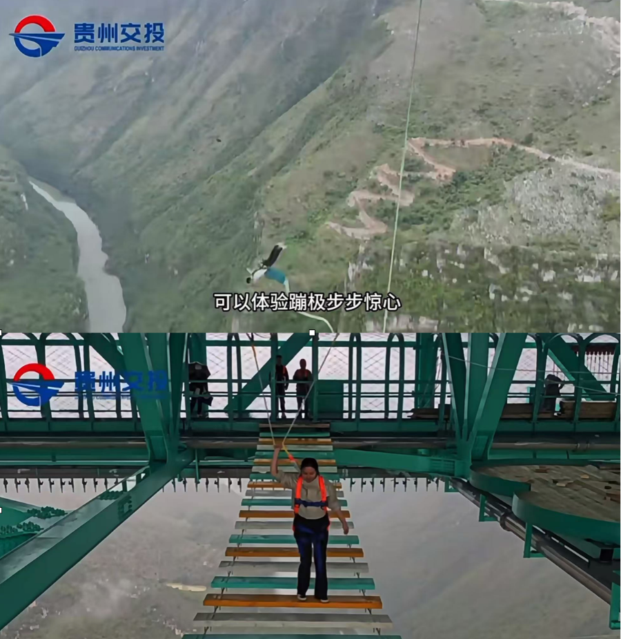 (花江峡谷大桥结合桥身环境推出多个刺激性游玩项目,来自股东方贵州交投)