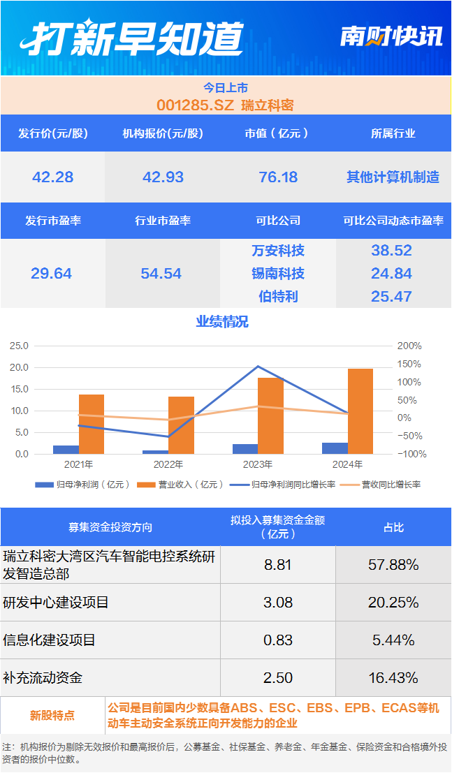 主动安全系统龙头,电子元器件B2B领军企业,2只新股上市丨打新早知道