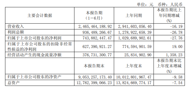 1-6月,养元的营收为24.65亿元,净利润为7.44亿元,同比分别下滑16.19%和27.76%,创下近三年同期新低。