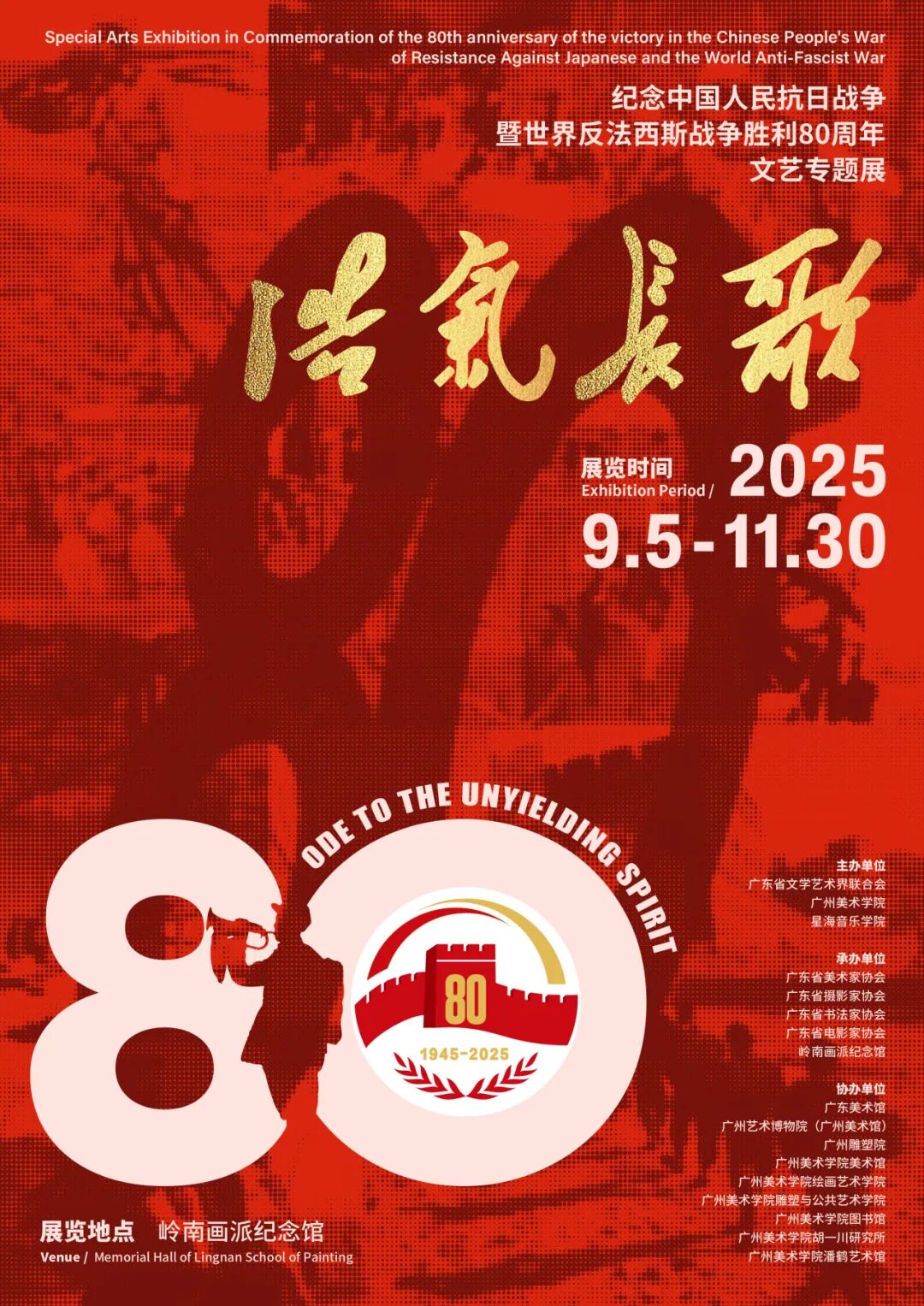 9月3日,“浩气长歌——纪念中国人民抗日战争暨世界反法西斯战争胜利80周年文艺专题展”在岭南画派纪念馆开幕。展览由广东省文学艺术界联合会、广州美术学院、星海音乐学院主办,广东省美术家协会、广东省摄影家协会、广东省书法家协会、广东省电影家协会、岭南画派纪念馆协办。