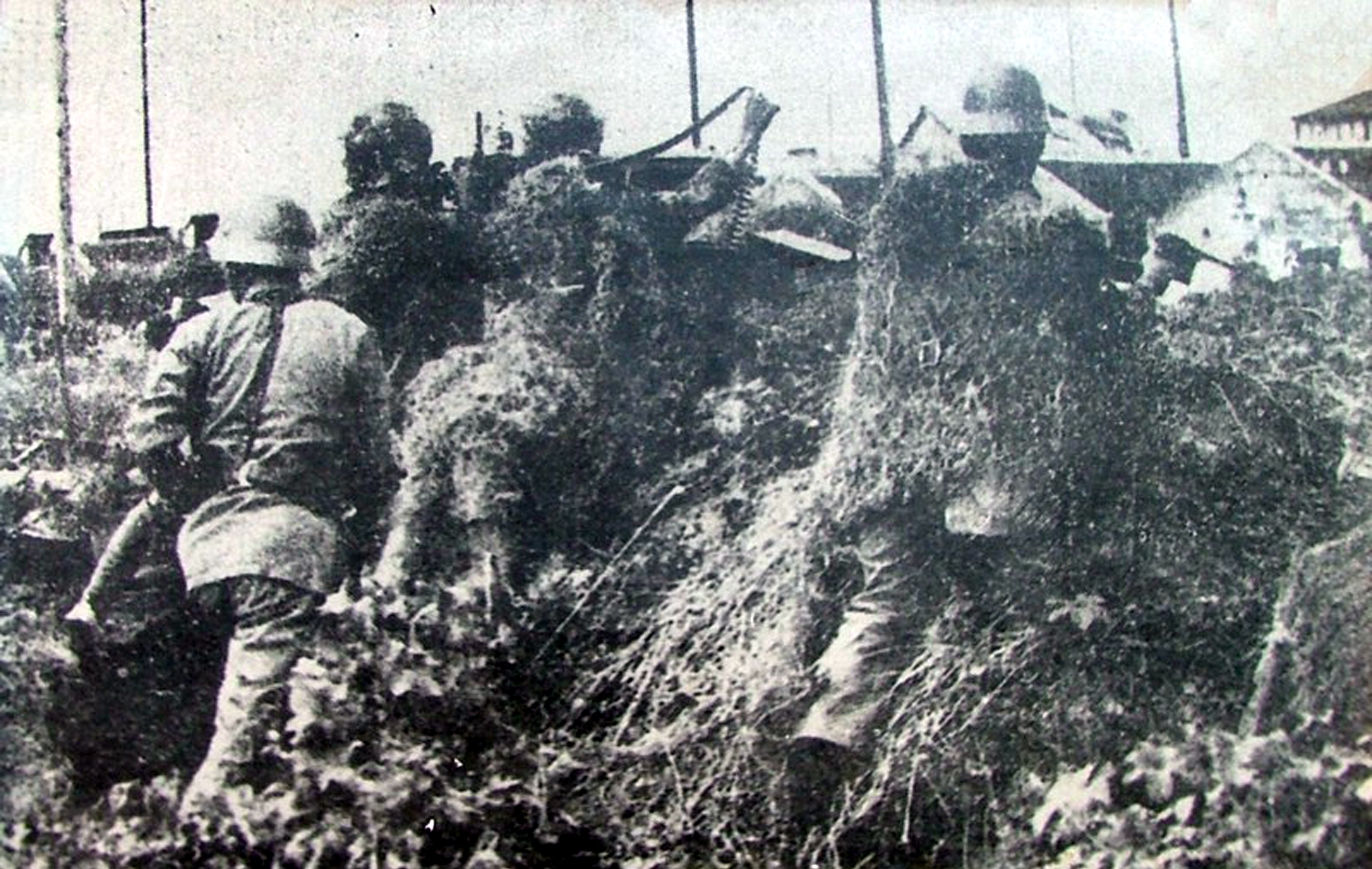 1937年8月13日,淞沪会战爆发。这是中国军队在闸北八字桥攻击日军。新华社发