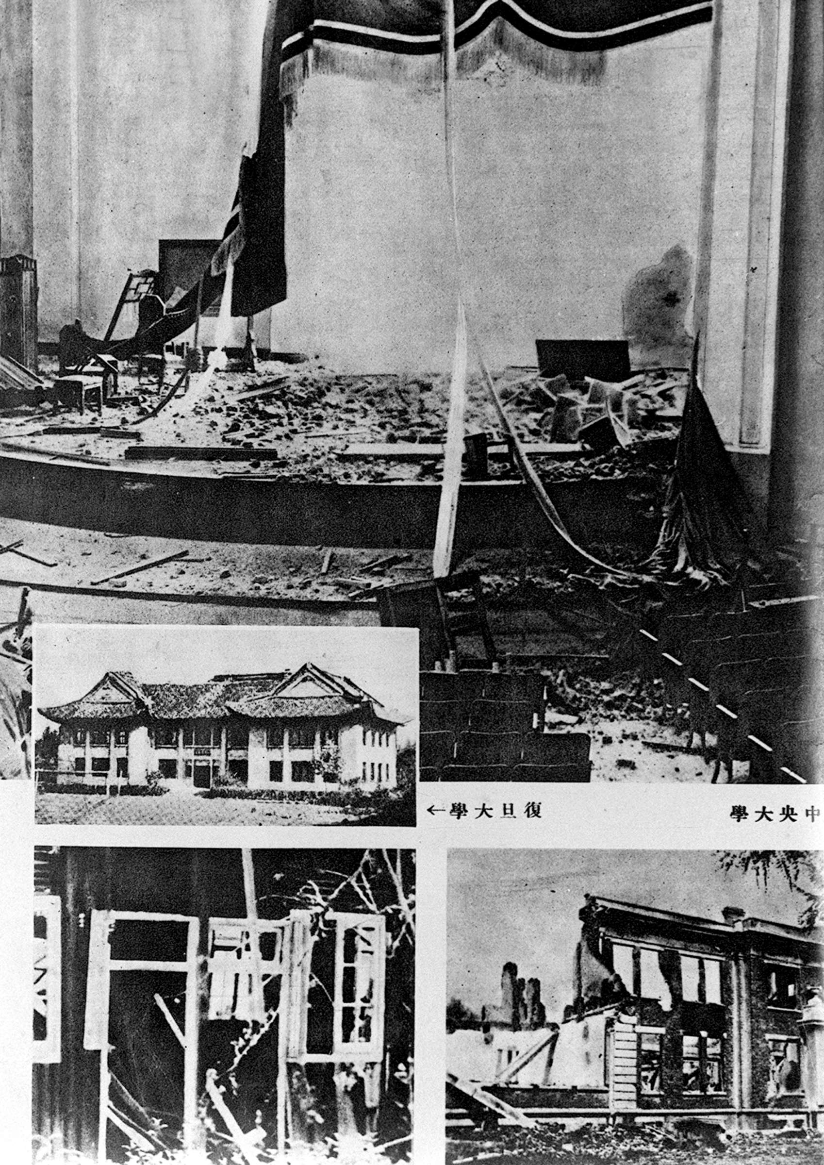 1937年8月13日,日本军队攻占上海时,复旦大学等文化机关惨遭破坏。新华社发